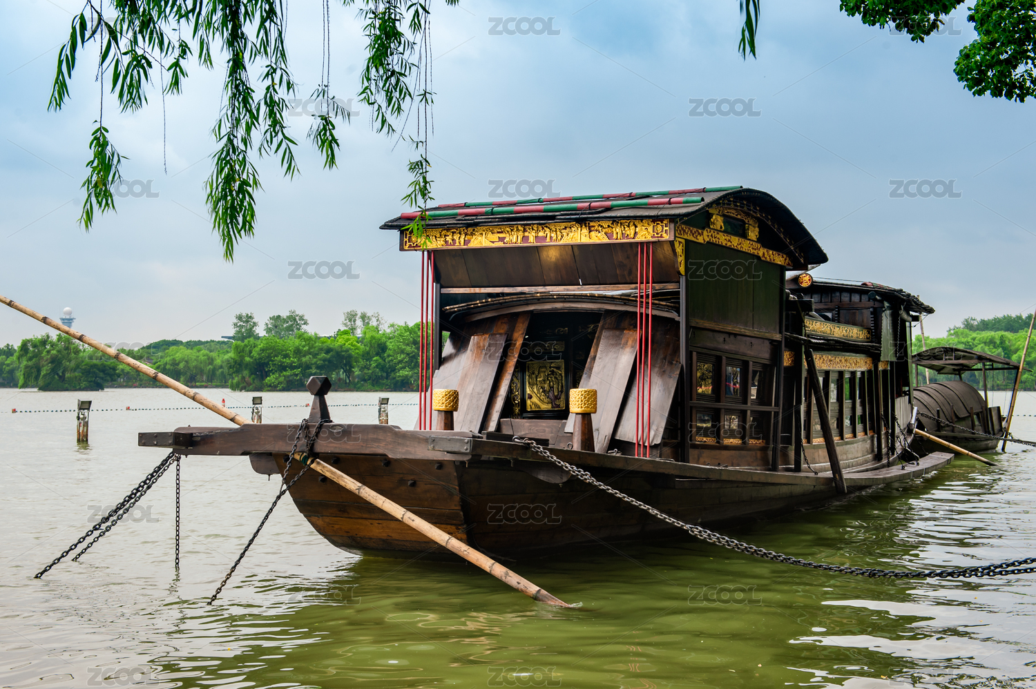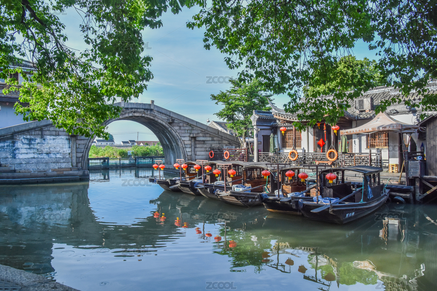 浙江省嘉兴市嘉善县西塘古镇摇橹船风光