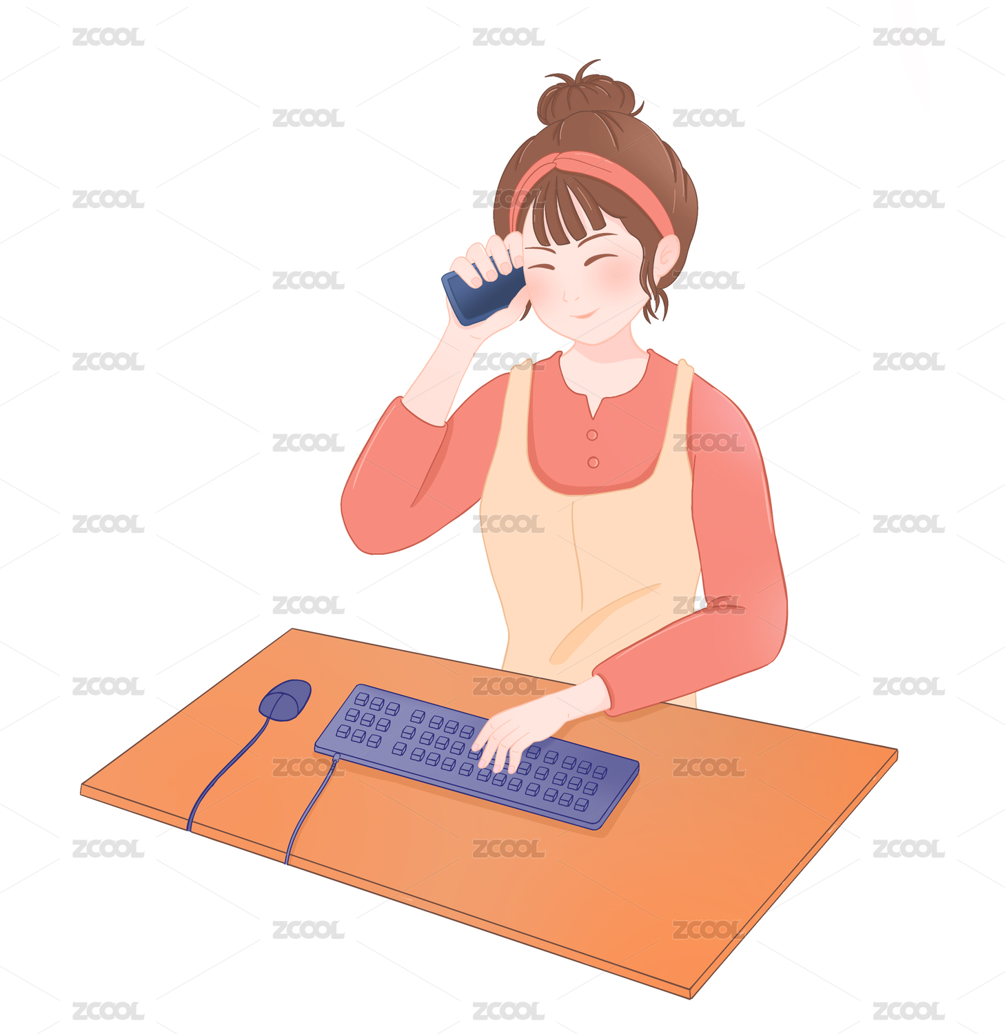 手绘卡通正在上班打电话的女孩子
