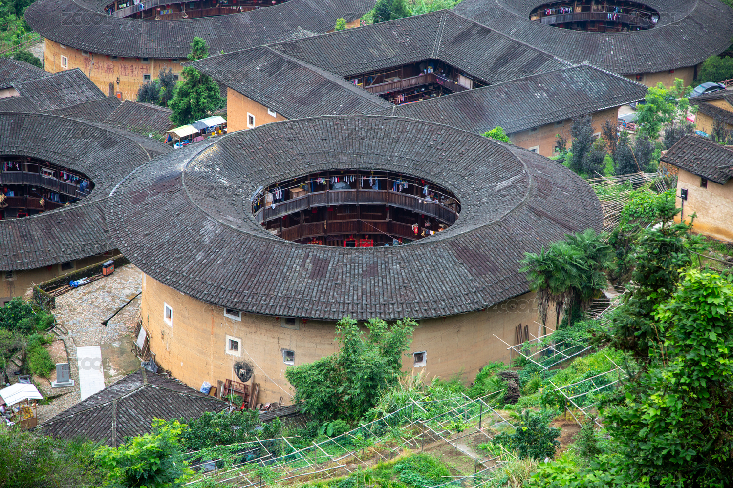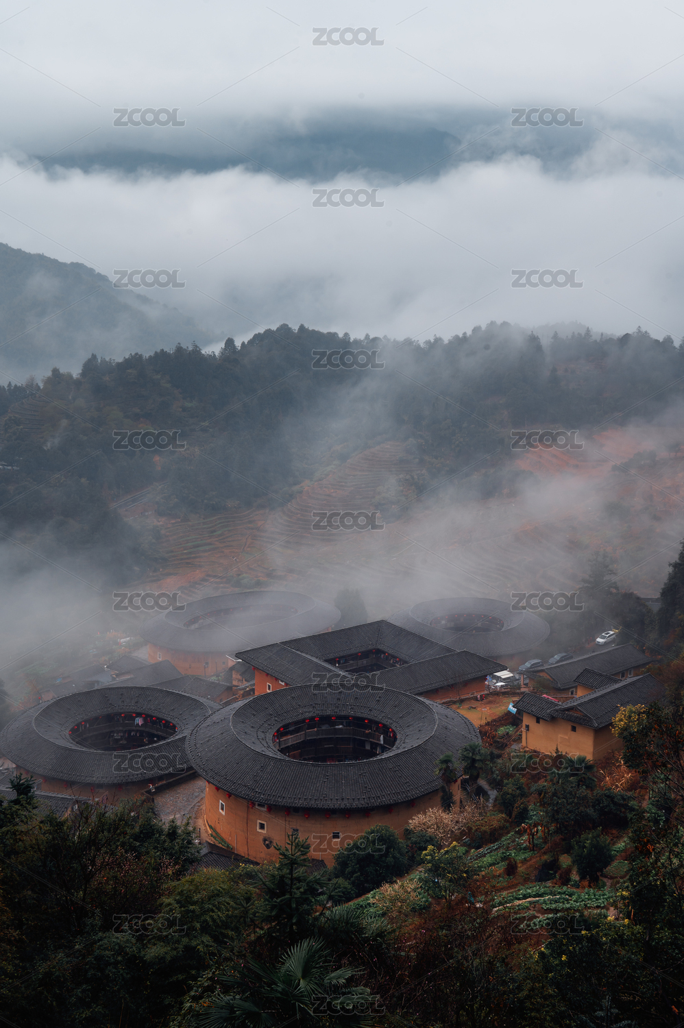福建漳州南靖田螺坑土楼群俯瞰图