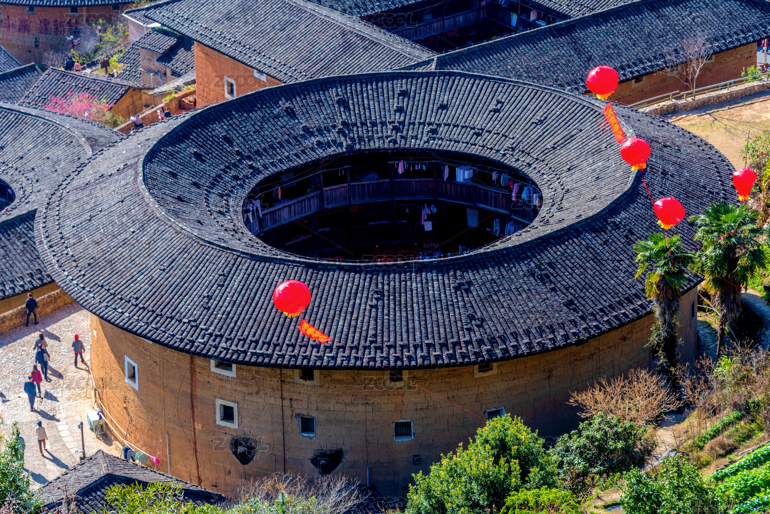福建漳州龙岩田螺坑四菜一汤圆形土楼景色