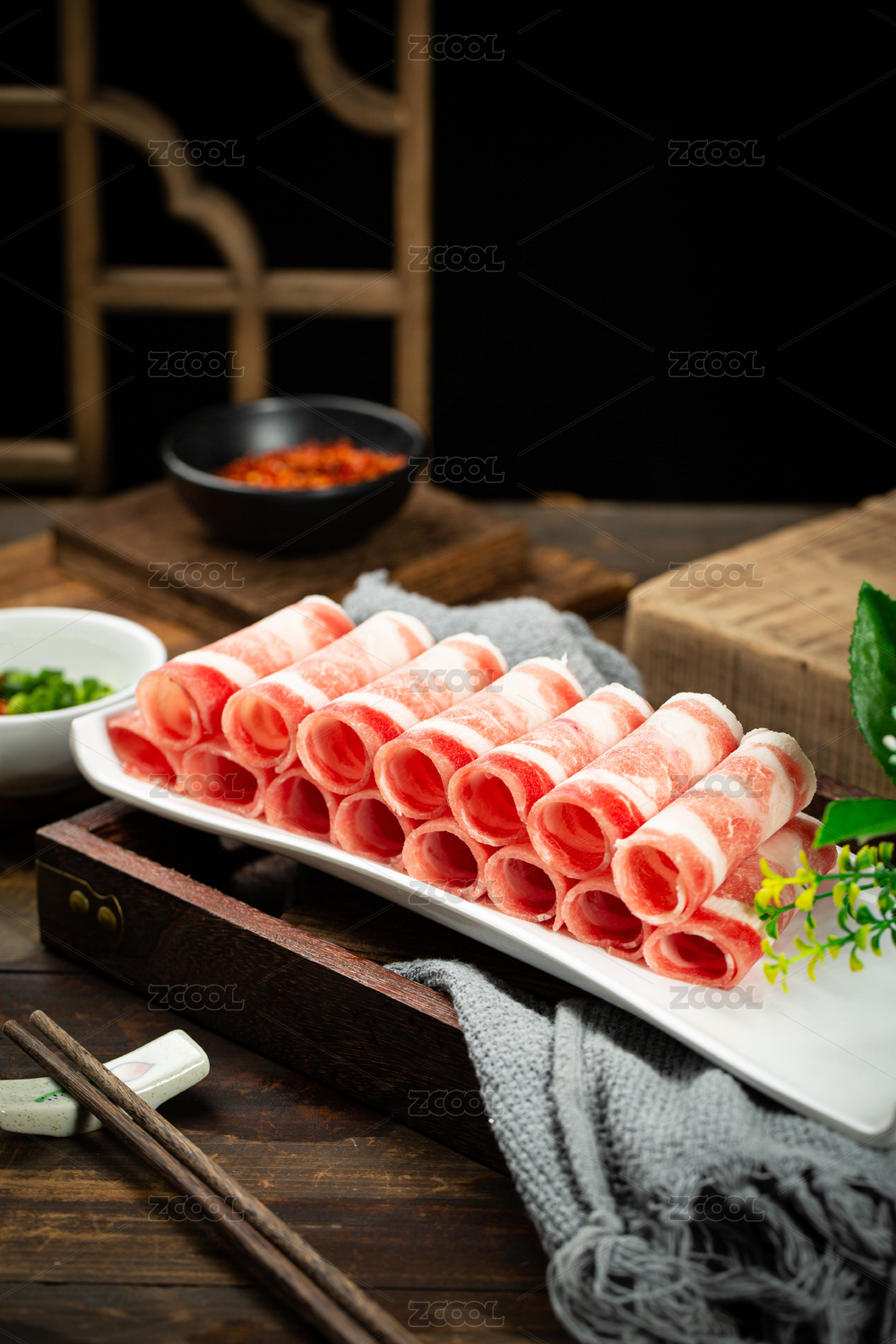 森系火锅食材牛肉卷肥牛卷