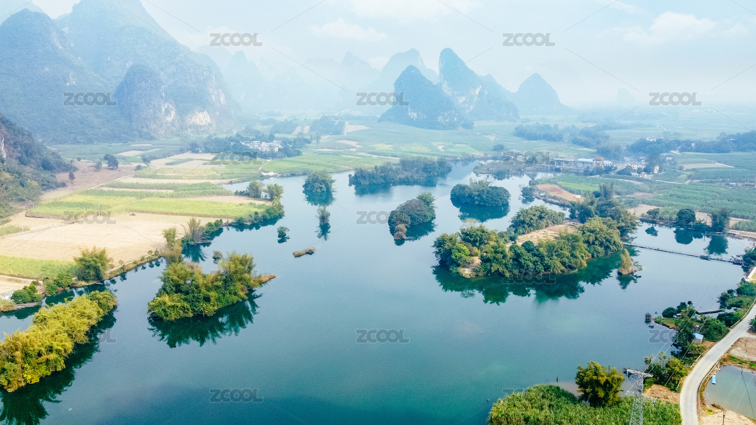 广西桂林阳朔兴坪古镇喀斯特峰林自然风光