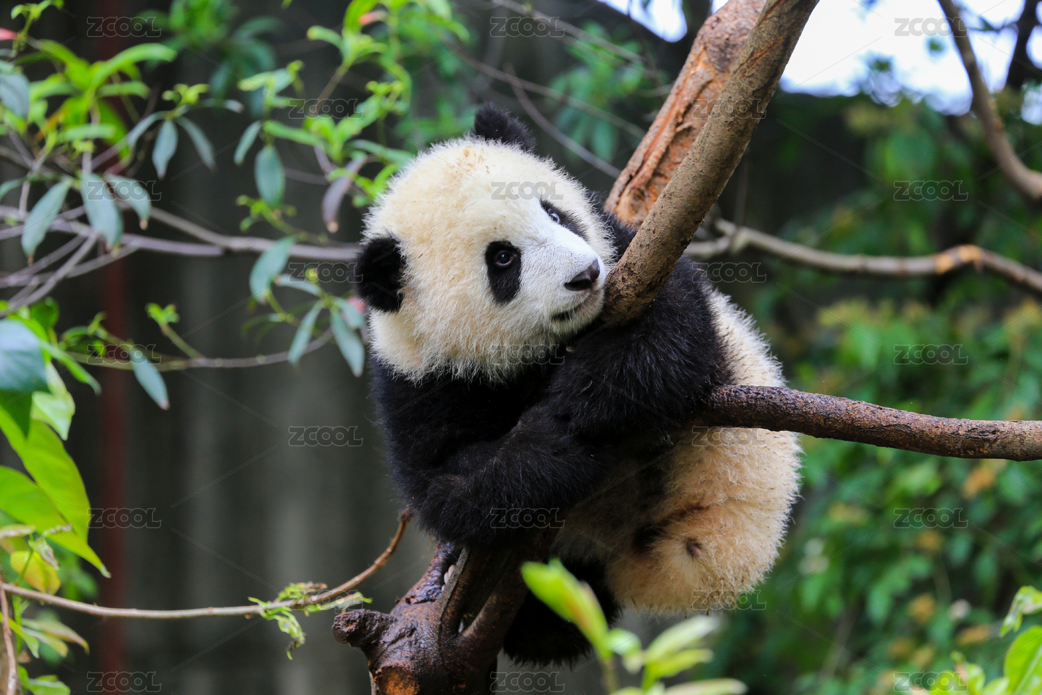 在树枝上玩耍的大熊猫幼崽