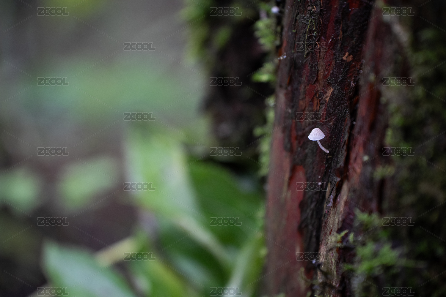森林里下雨天后树上长出的小蘑菇