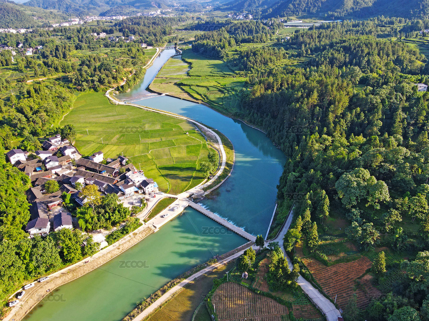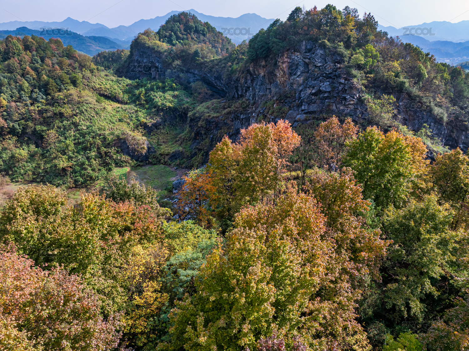 诸暨灵山坞废弃矿山生态治理后秋色美景航拍