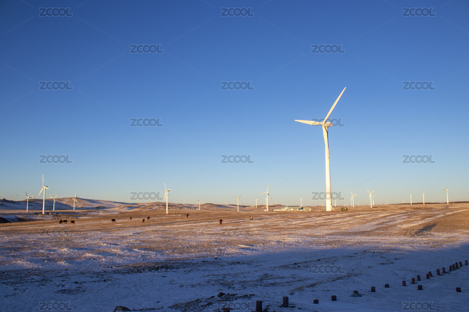 冬日里荒野中的马群
