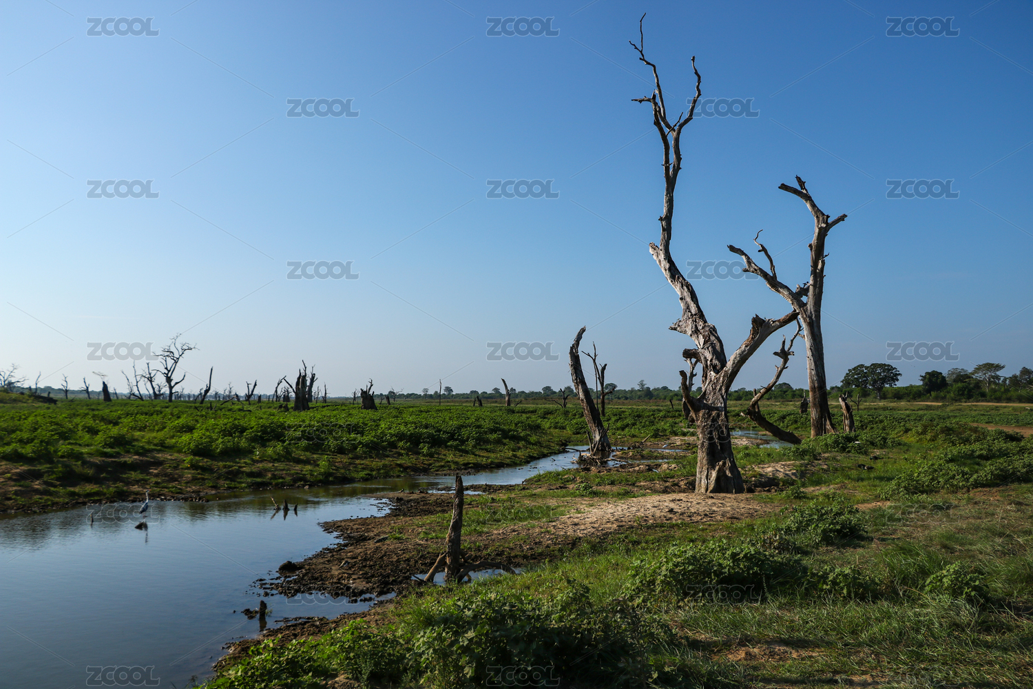 斯里兰卡荒野原野枯木树林景观