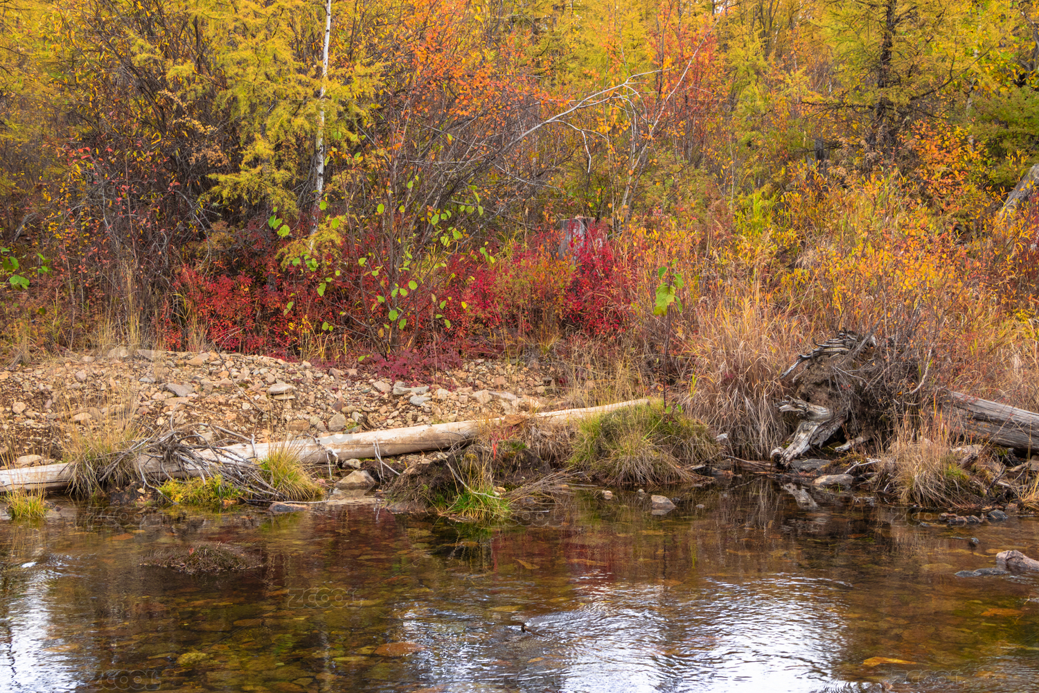 中国大兴安岭五颜六色的荒野湿地秋景