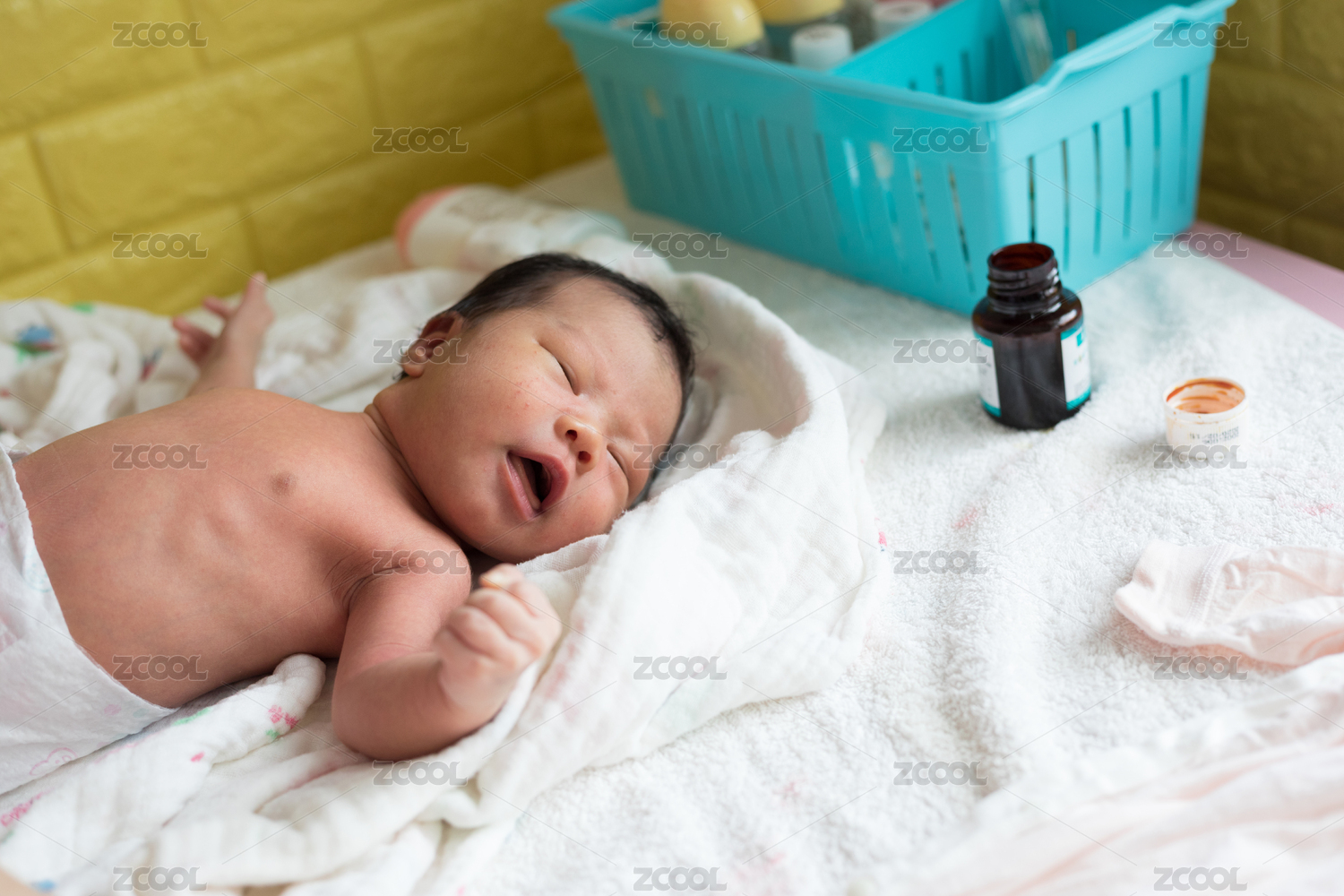 躺在尿布台上的新生儿
