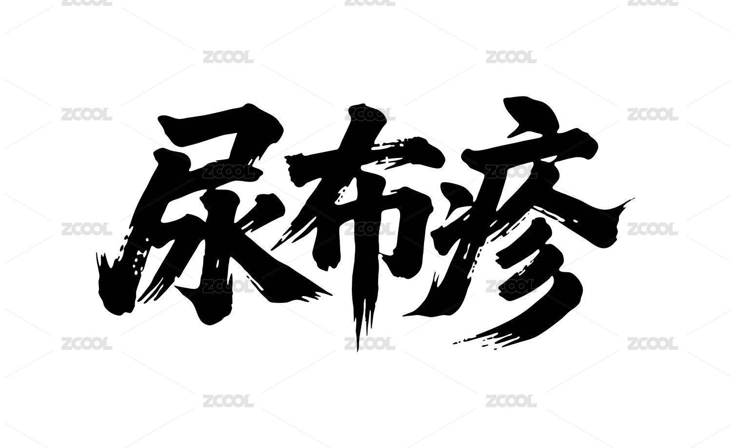 尿布疹矢量书法手写毛笔字