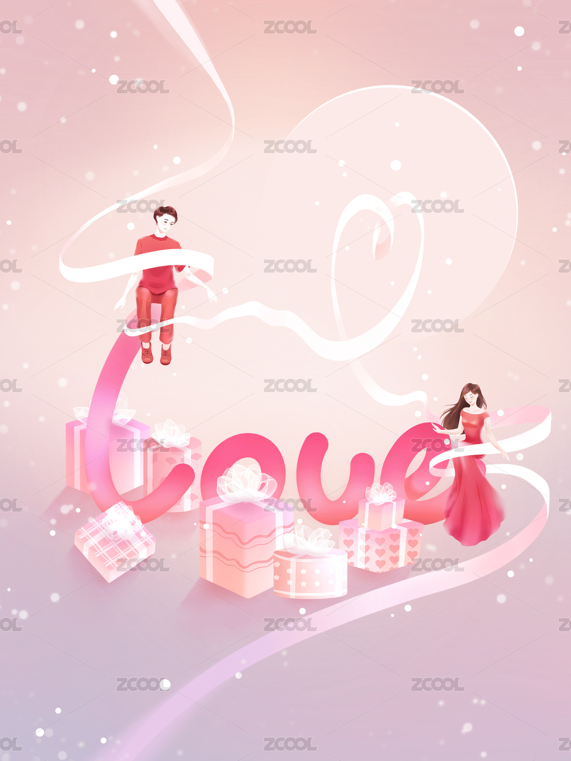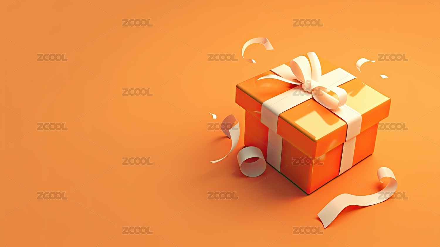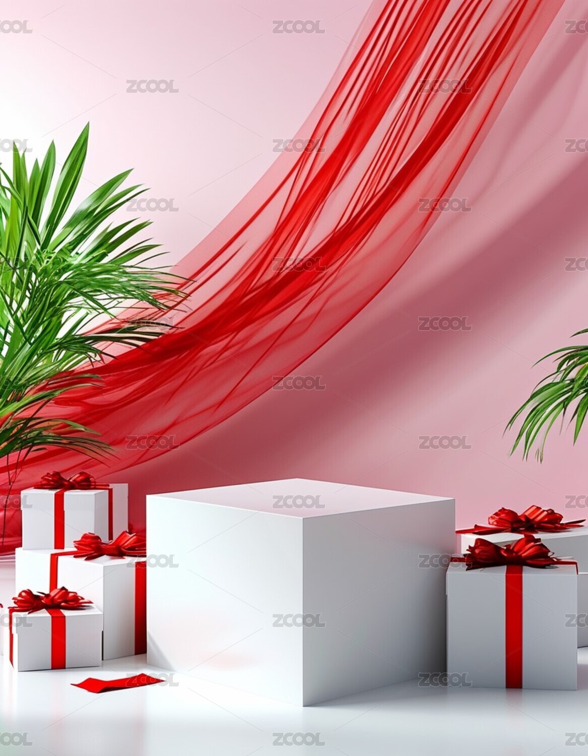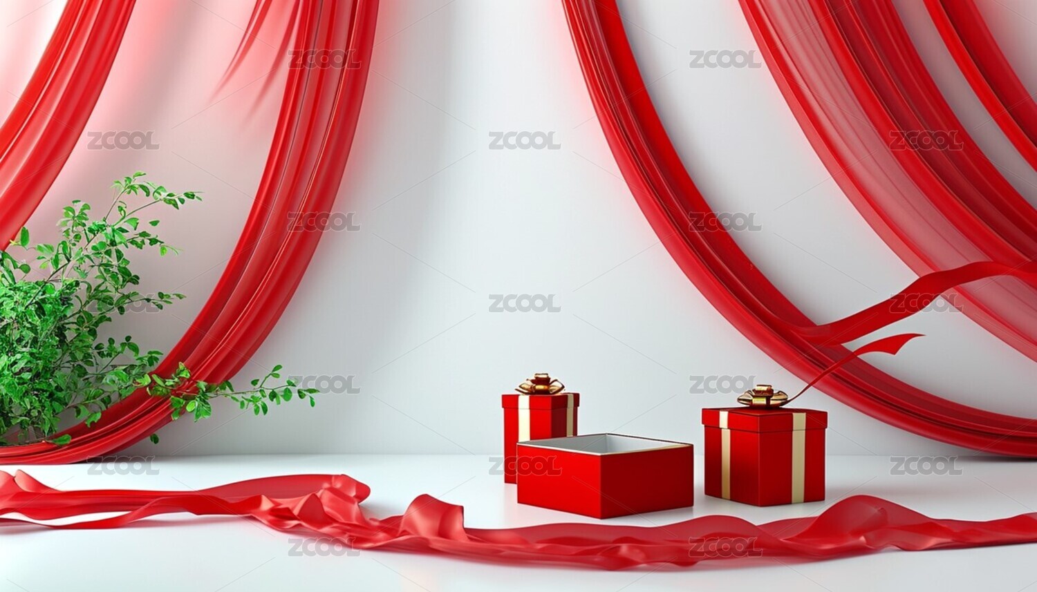 电商展台室内立体展示背景节庆礼物盒红飘带