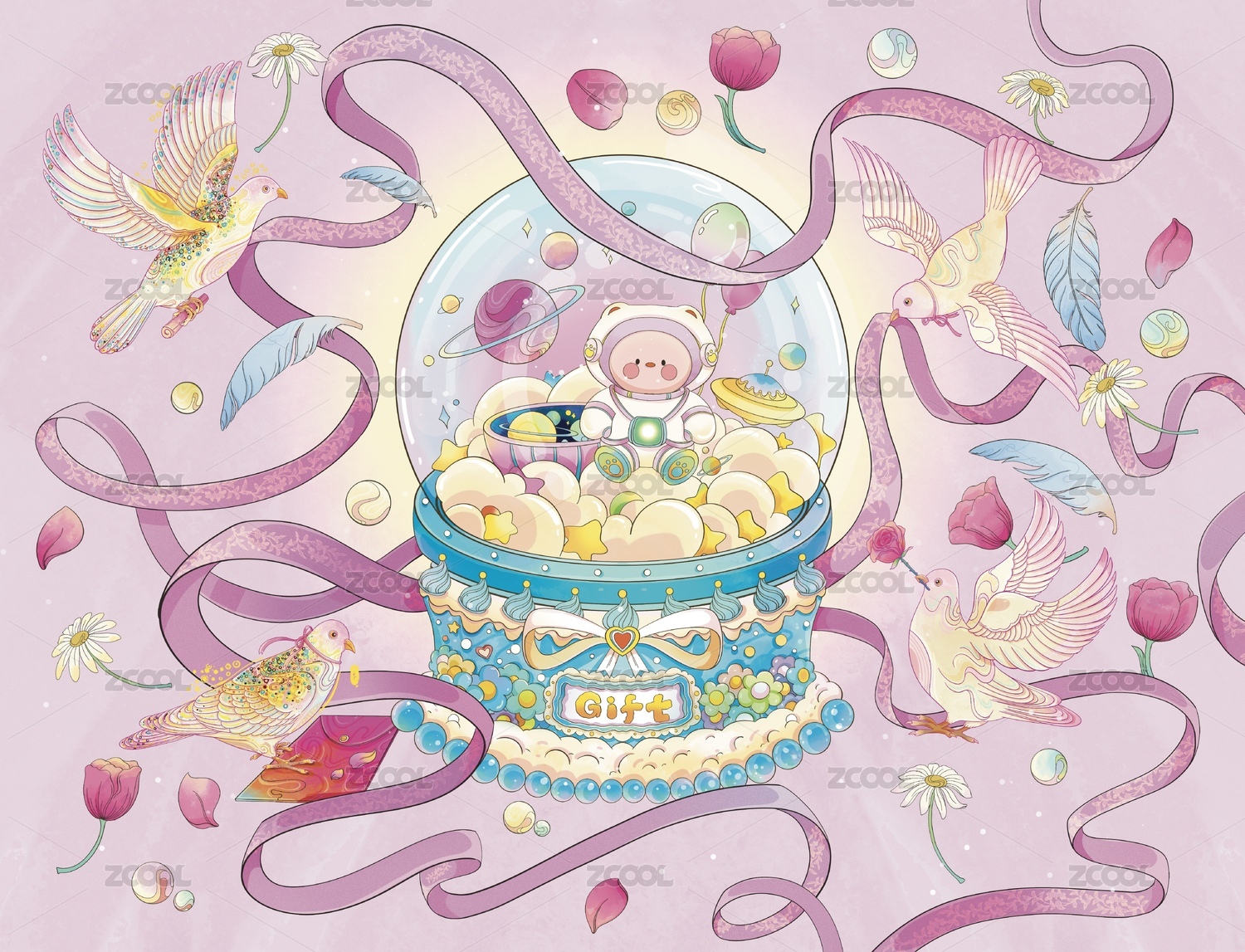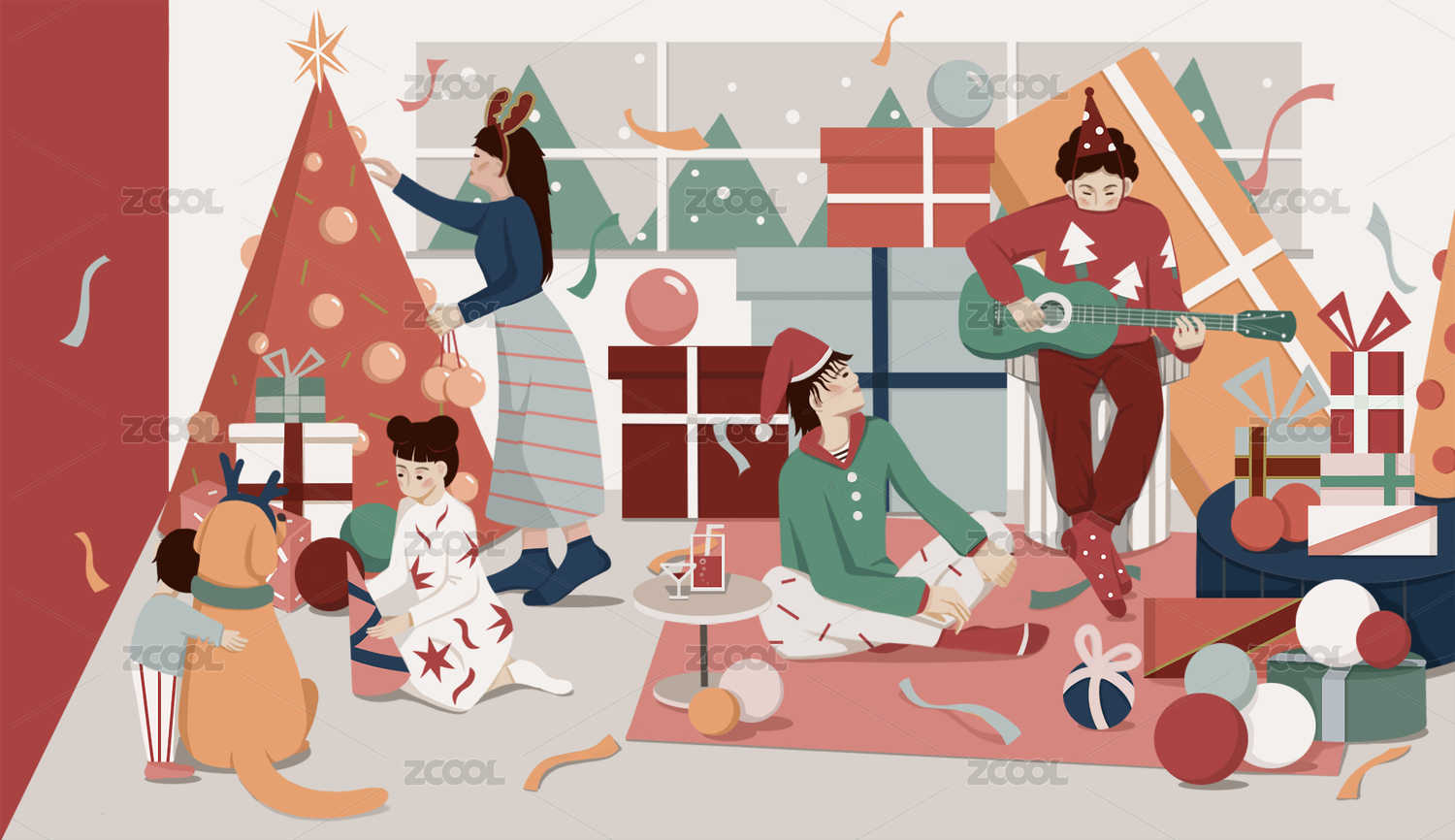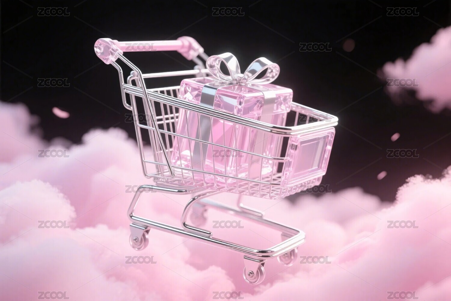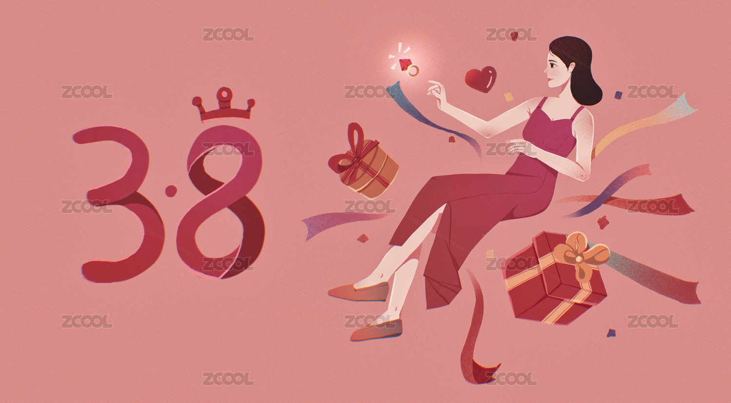 电商展台室内立体展示背景节庆礼物盒红飘带