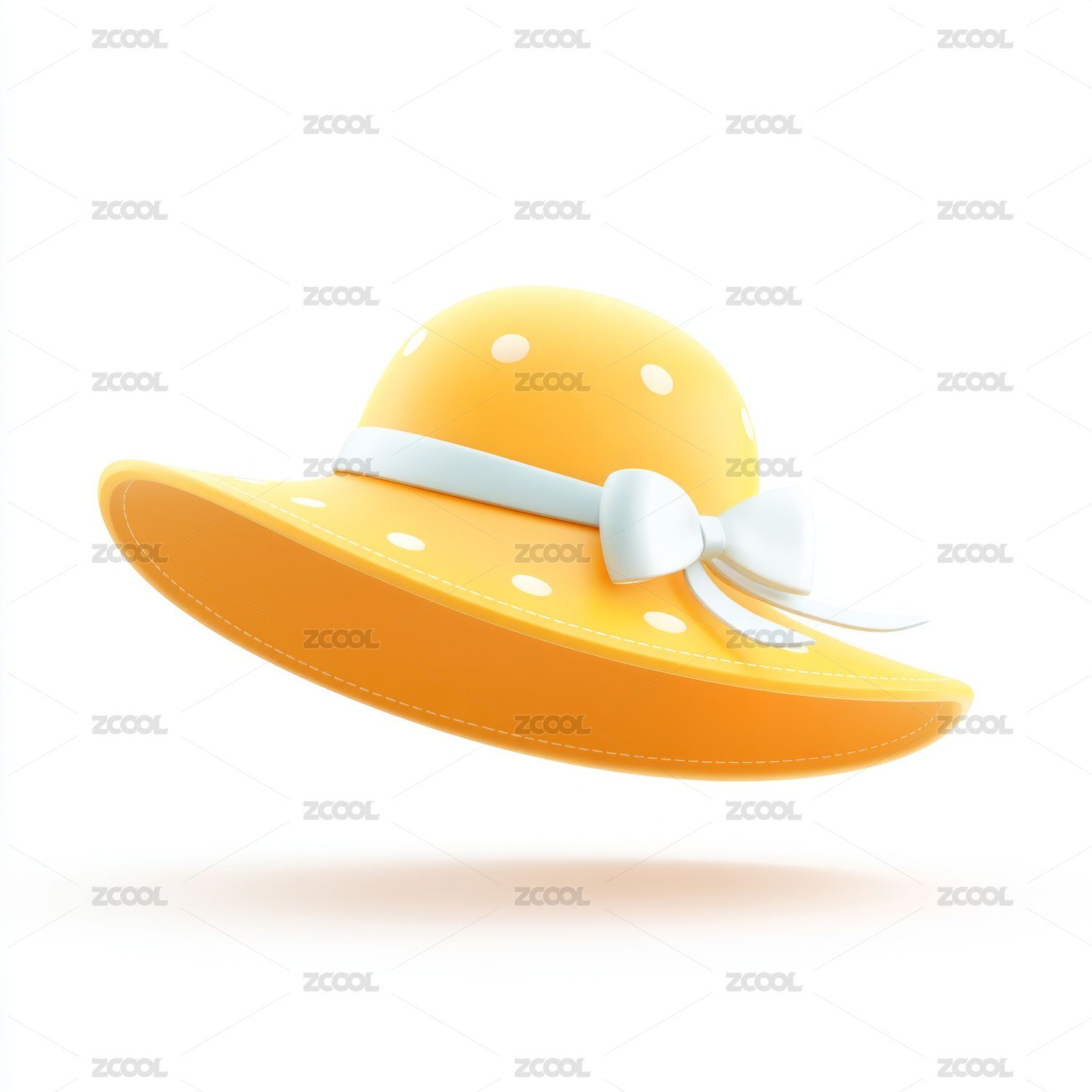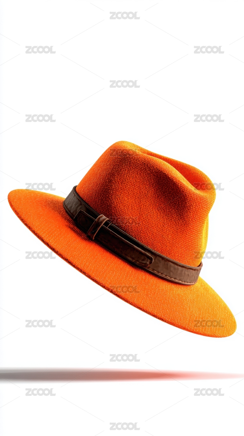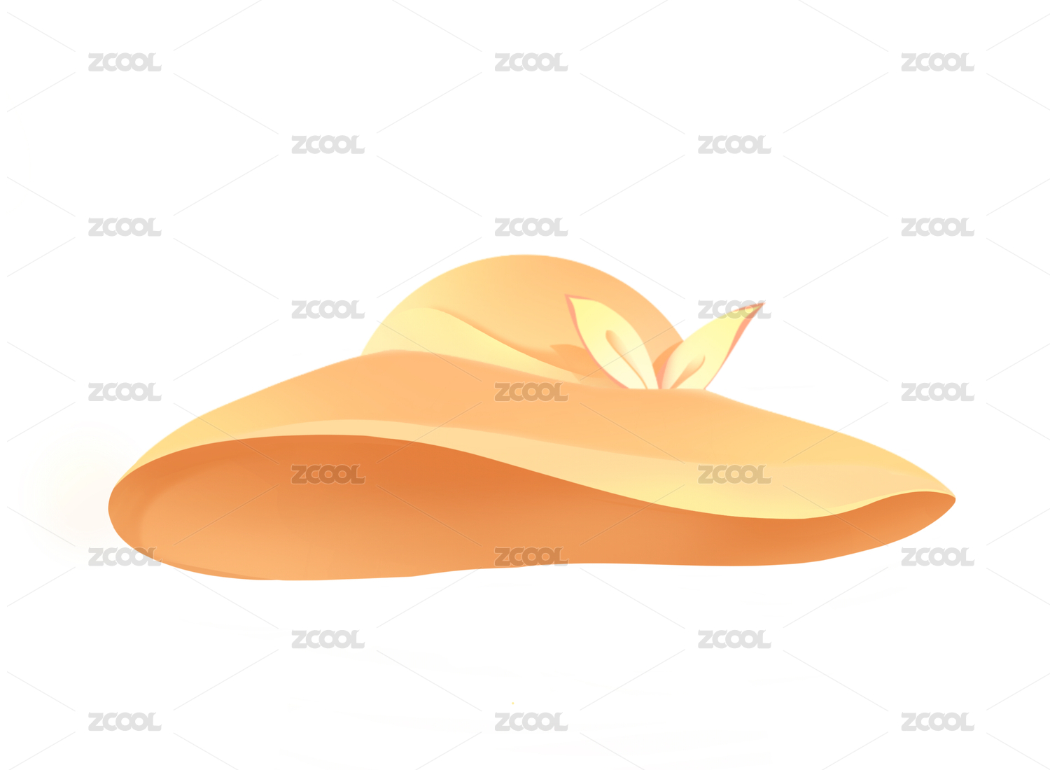 橙色宽沿帽手绘卡通时尚穿搭素材