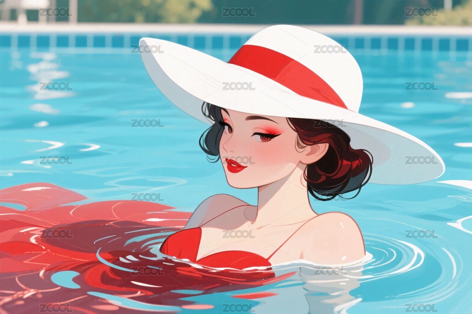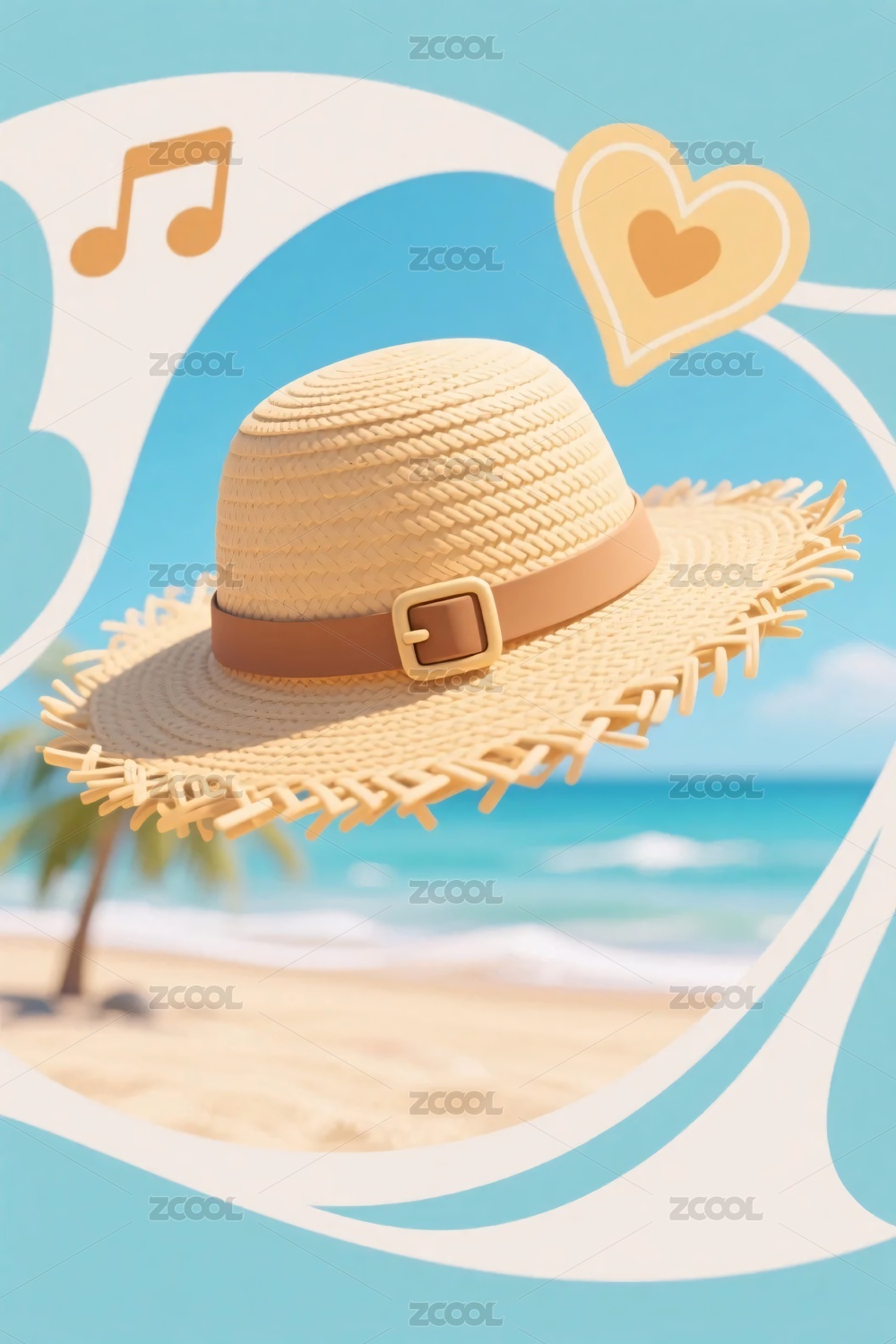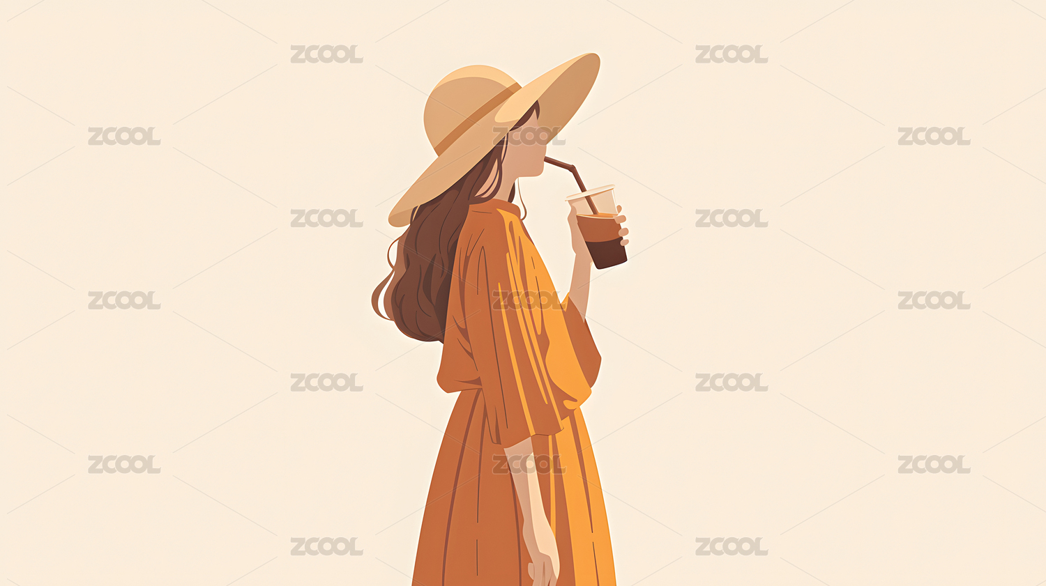 橙色宽沿帽手绘卡通时尚穿搭素材