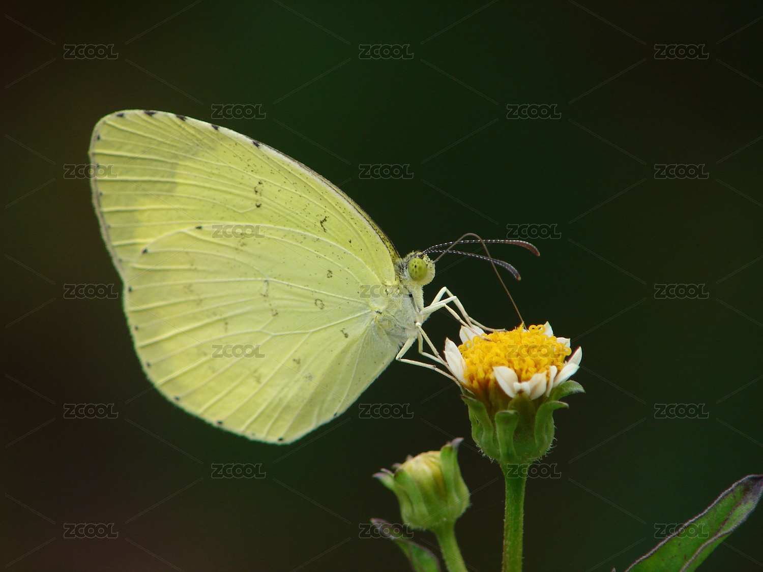 一只蝴蝶(宽边黄粉蝶)在野菊上采蜜