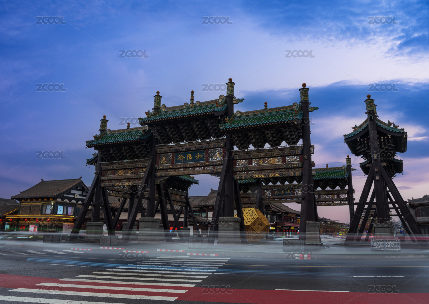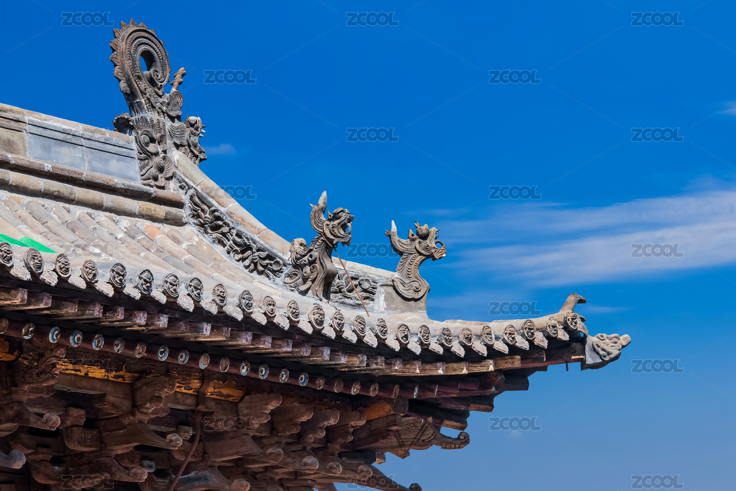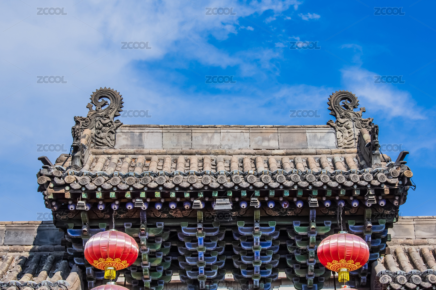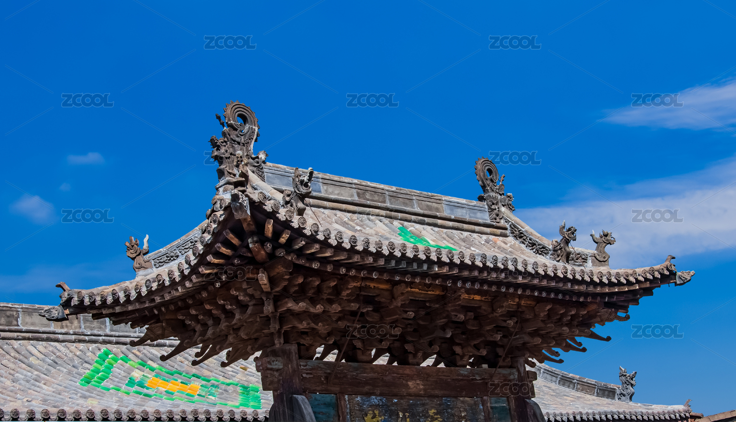 中国山西省平遥县古城牌楼斗拱园林建筑