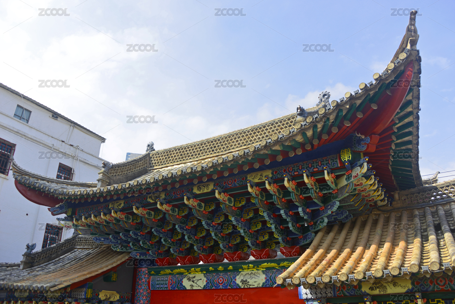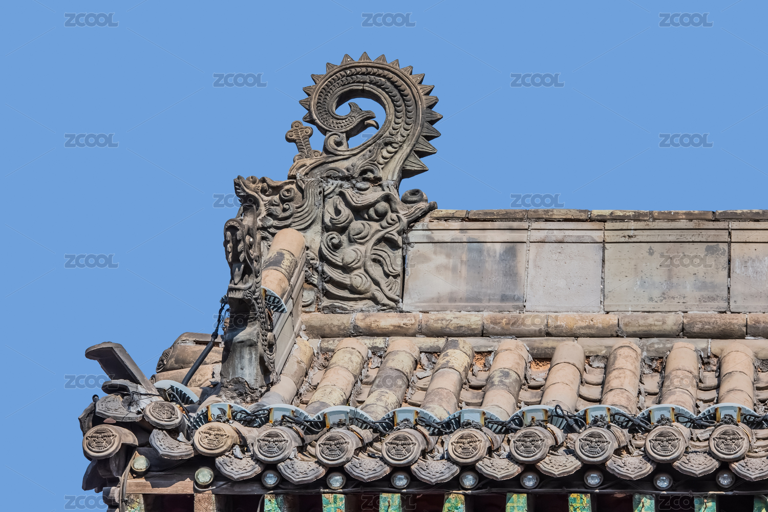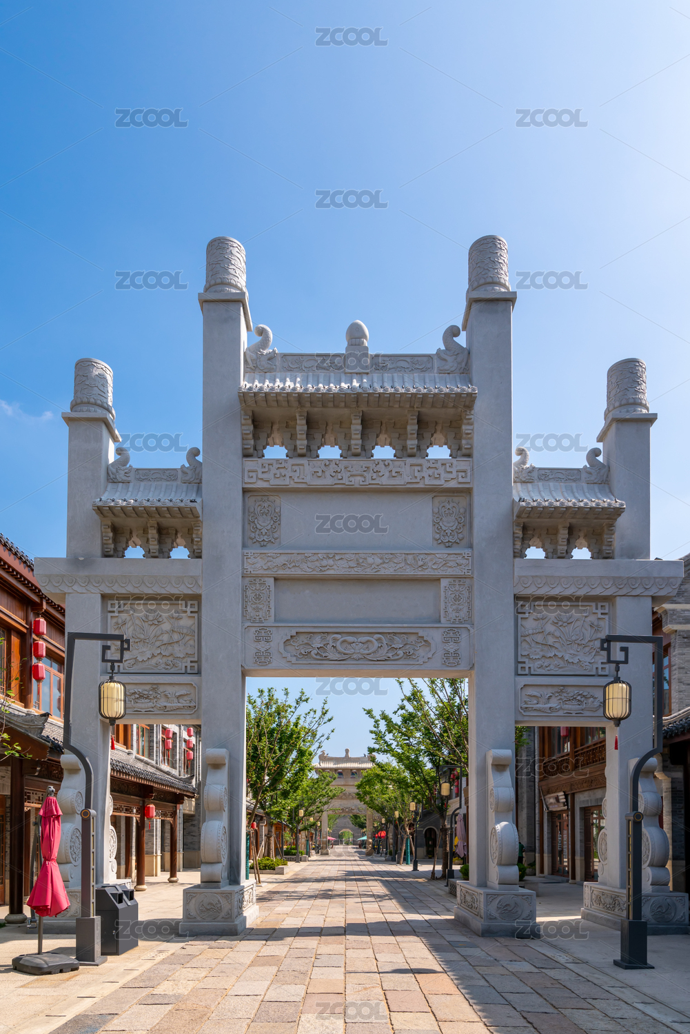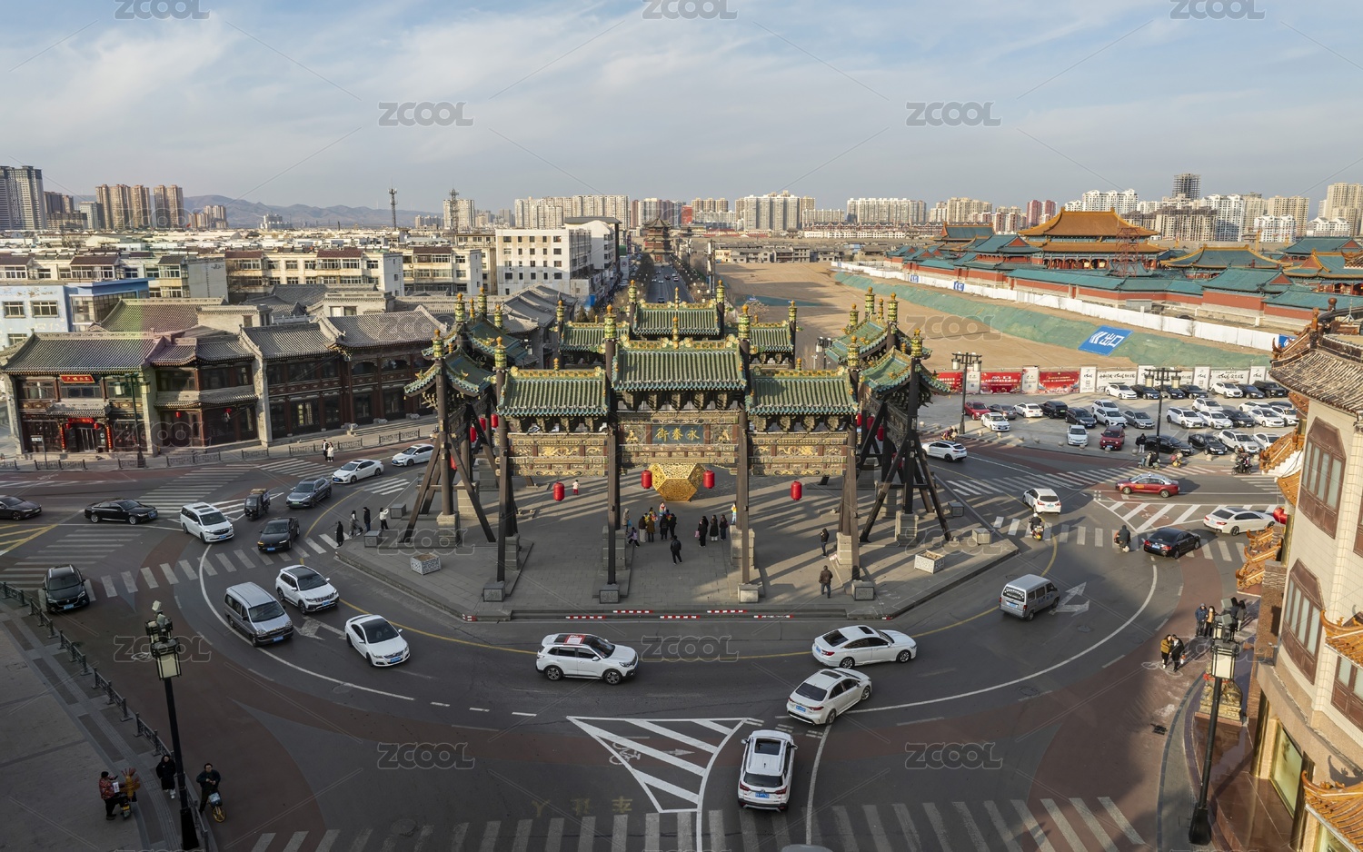 中国山西省平遥县古城牌楼斗拱园林建筑
