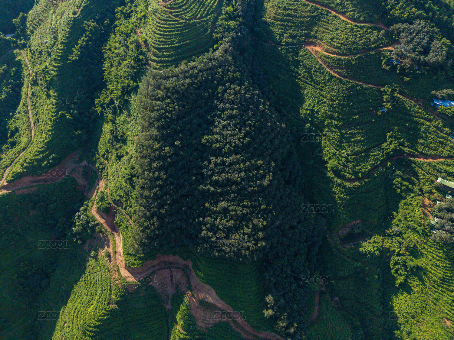 航拍层峦叠翠的绿色山脉