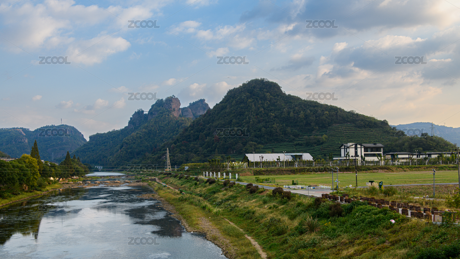 层峦叠嶂的山峰和蜿蜒的小河