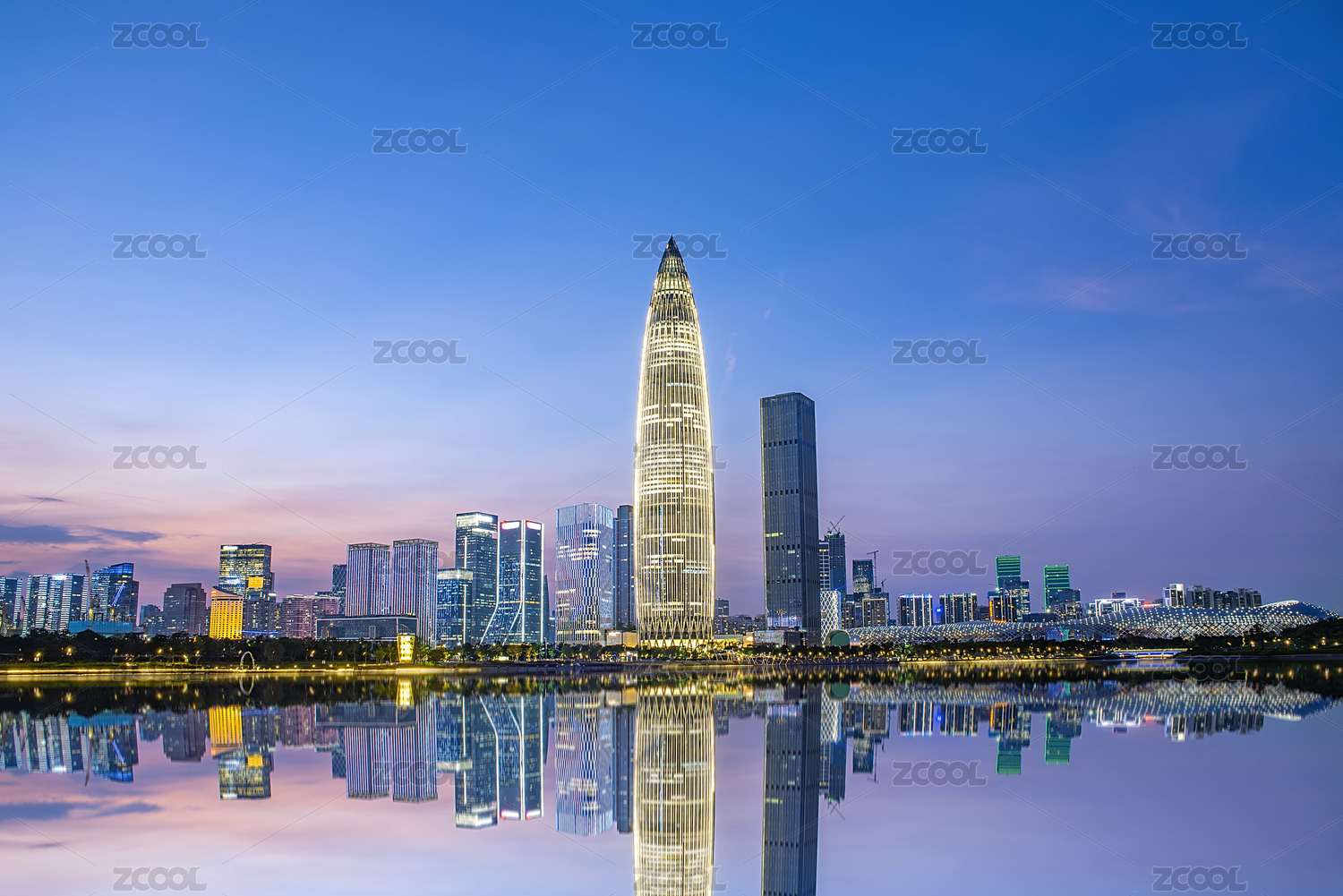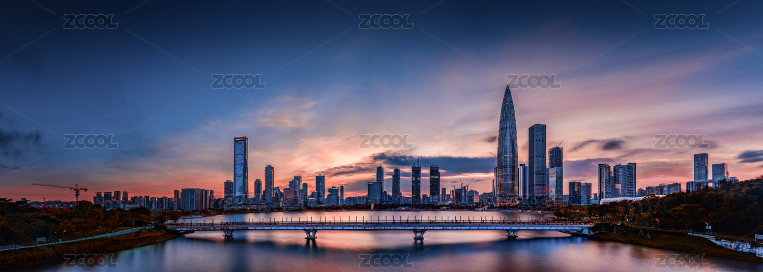 中国广东省深圳市人才公园日落城市风光,深圳大湾区城市背景