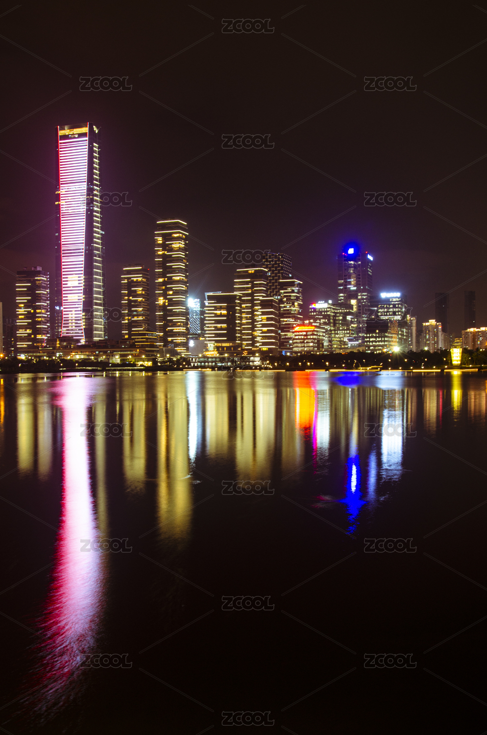 深圳湾深圳人才公园滨海CBD城市摩天大楼夜景灯光秀