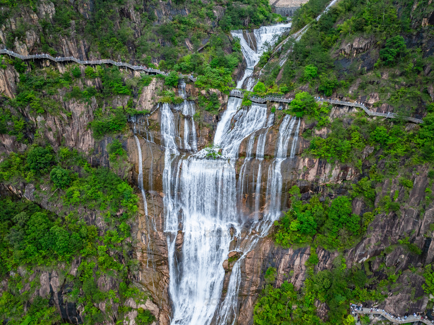浙江台州5A景区天台山脉琼台仙谷入口瀑布