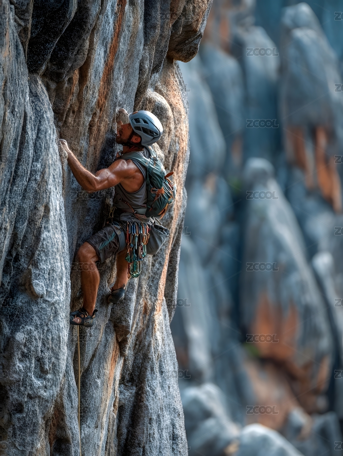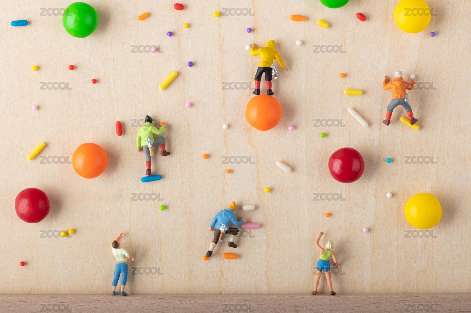 黄色的塑胶墙壁上五颜六色的攀岩岩点