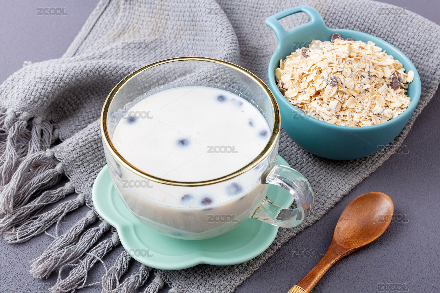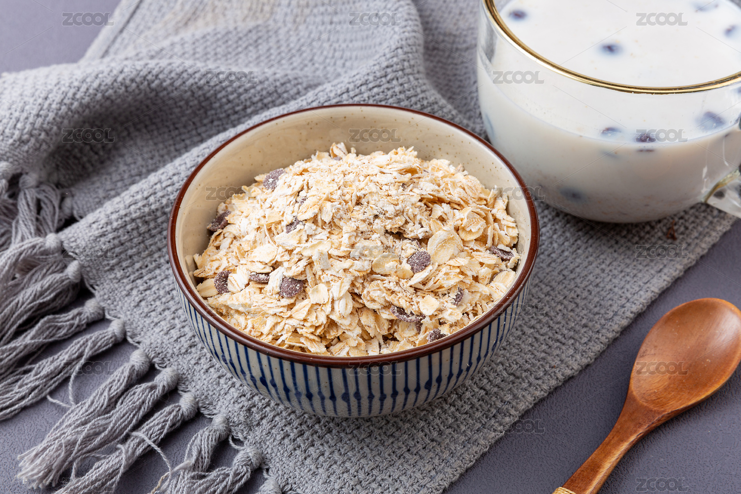 谷物牛奶早餐特写