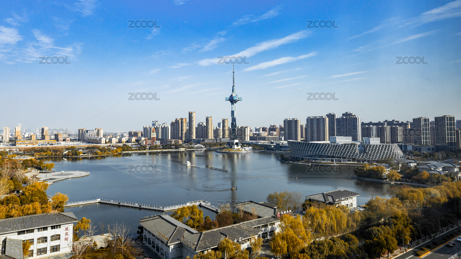 盐城聚龙湖建筑景观天际线
