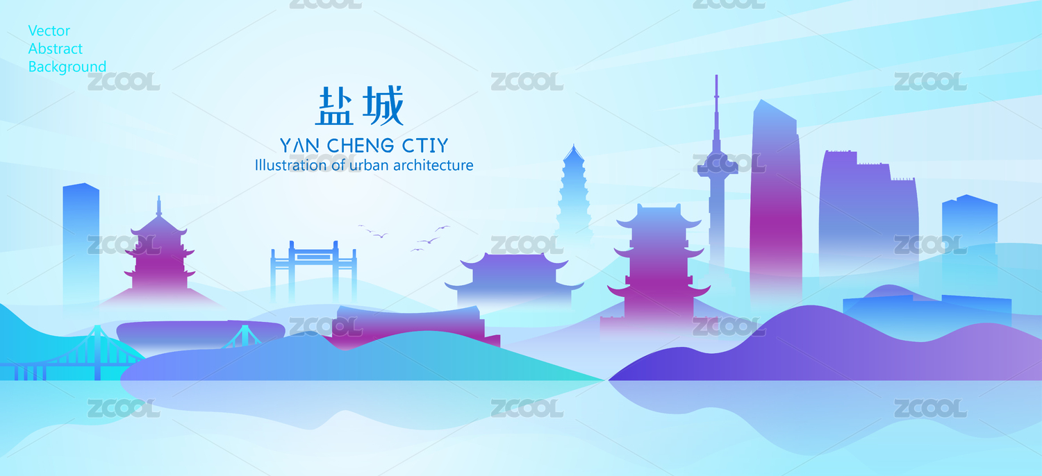 盐城城市地标建筑矢量剪影插画