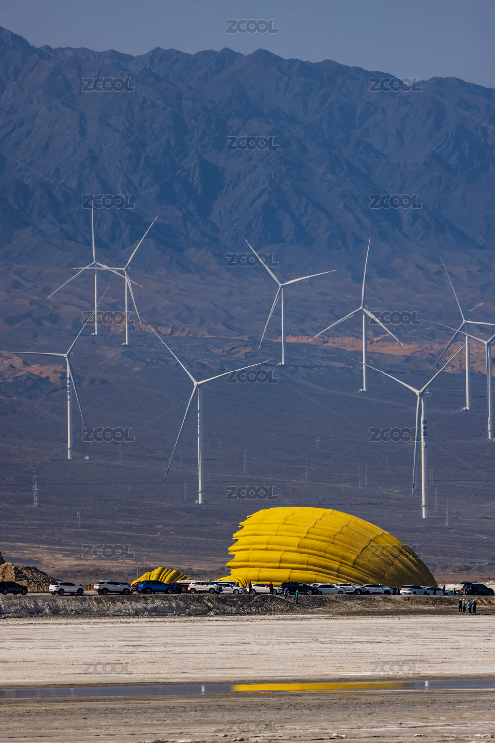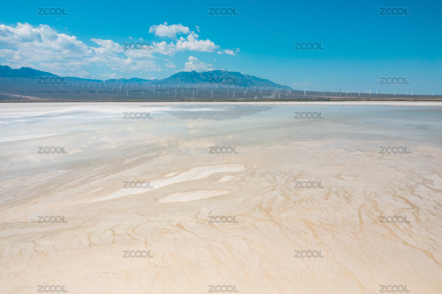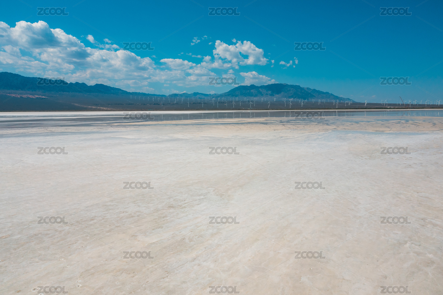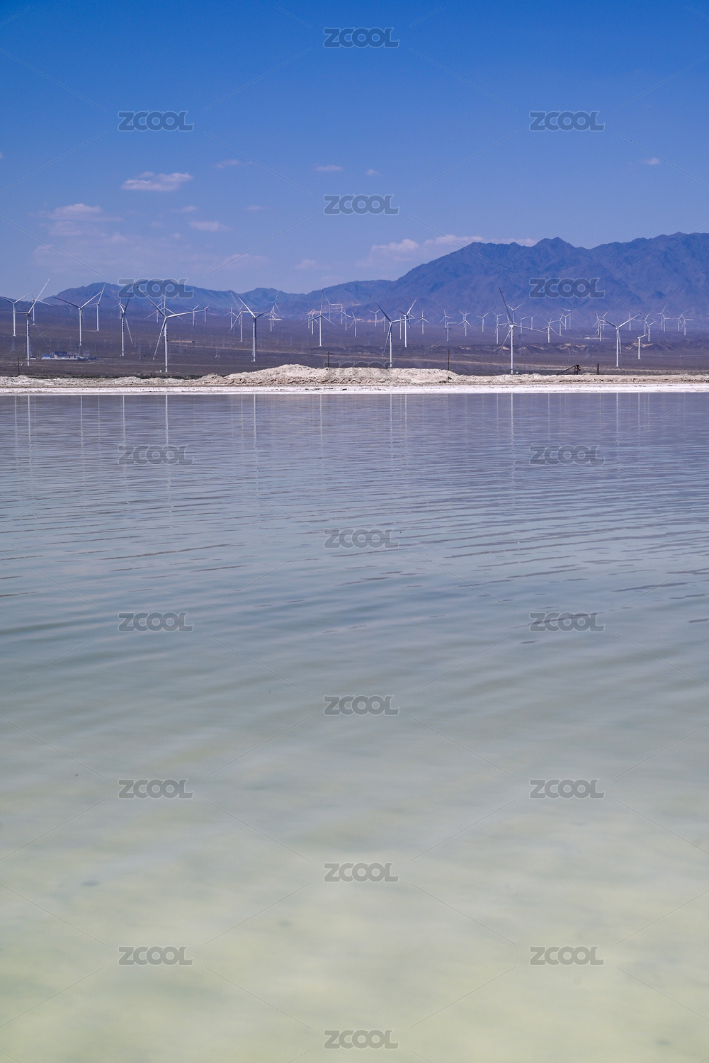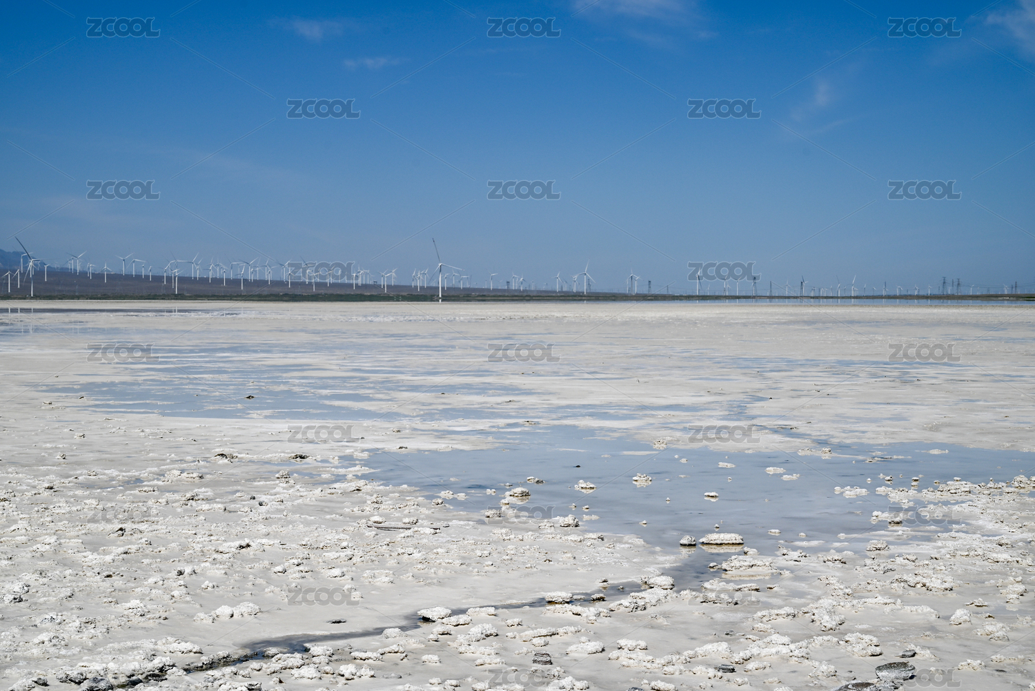 中国新疆大阪城盐湖风景区的风电