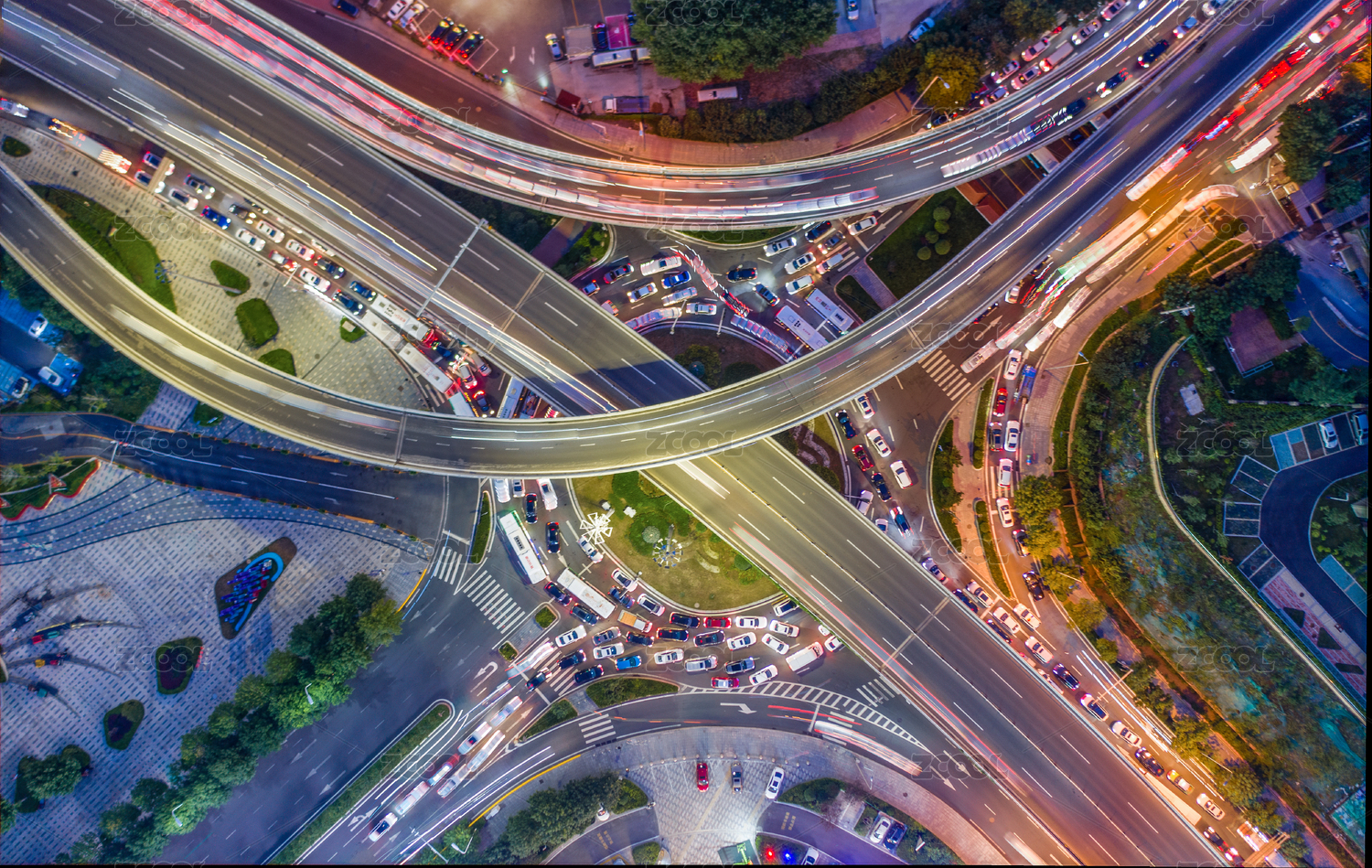 无人机鸟瞰中国山东省青岛市北区城市立交桥
