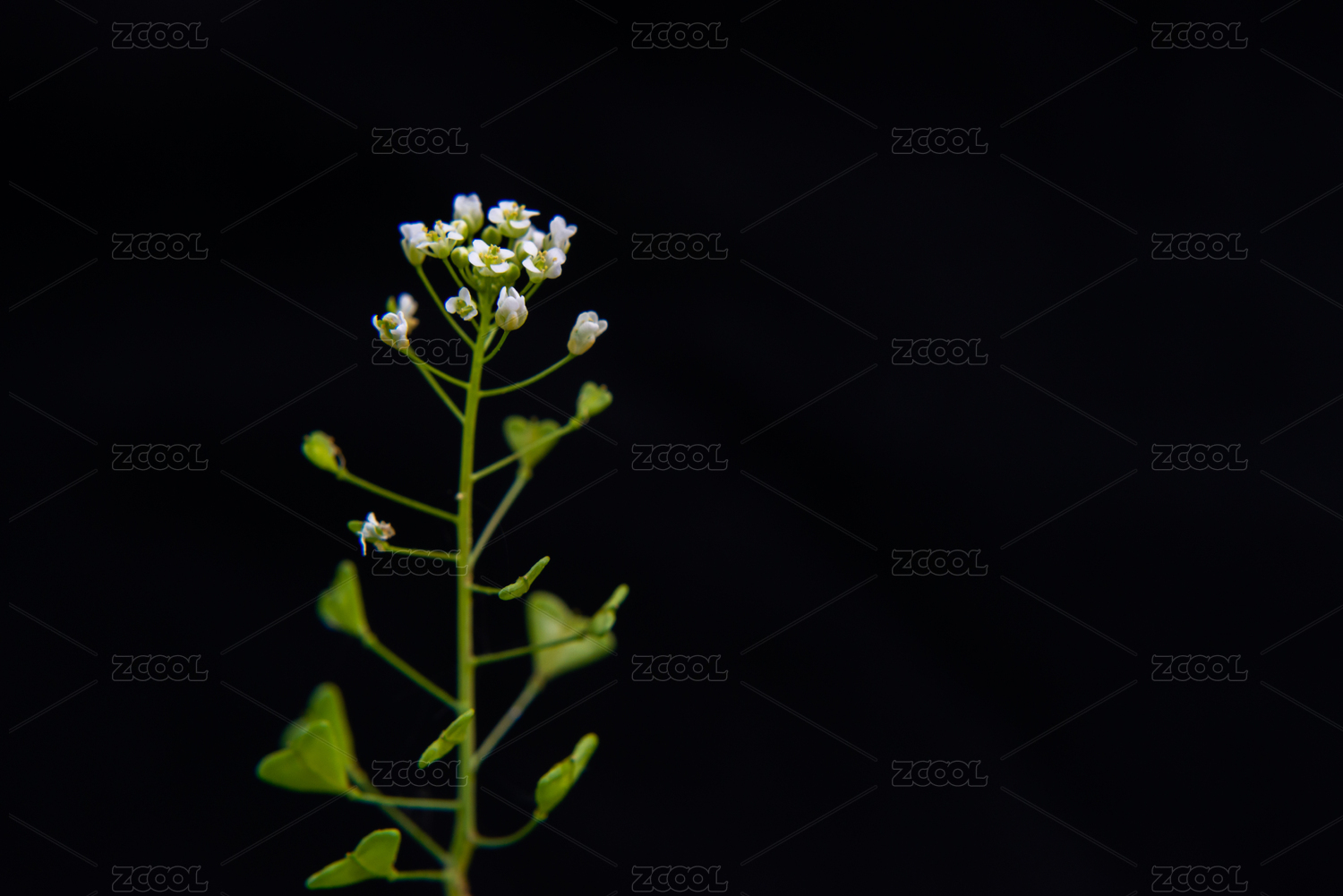 黑色背景下开花植物的特写镜头 十字花科荠