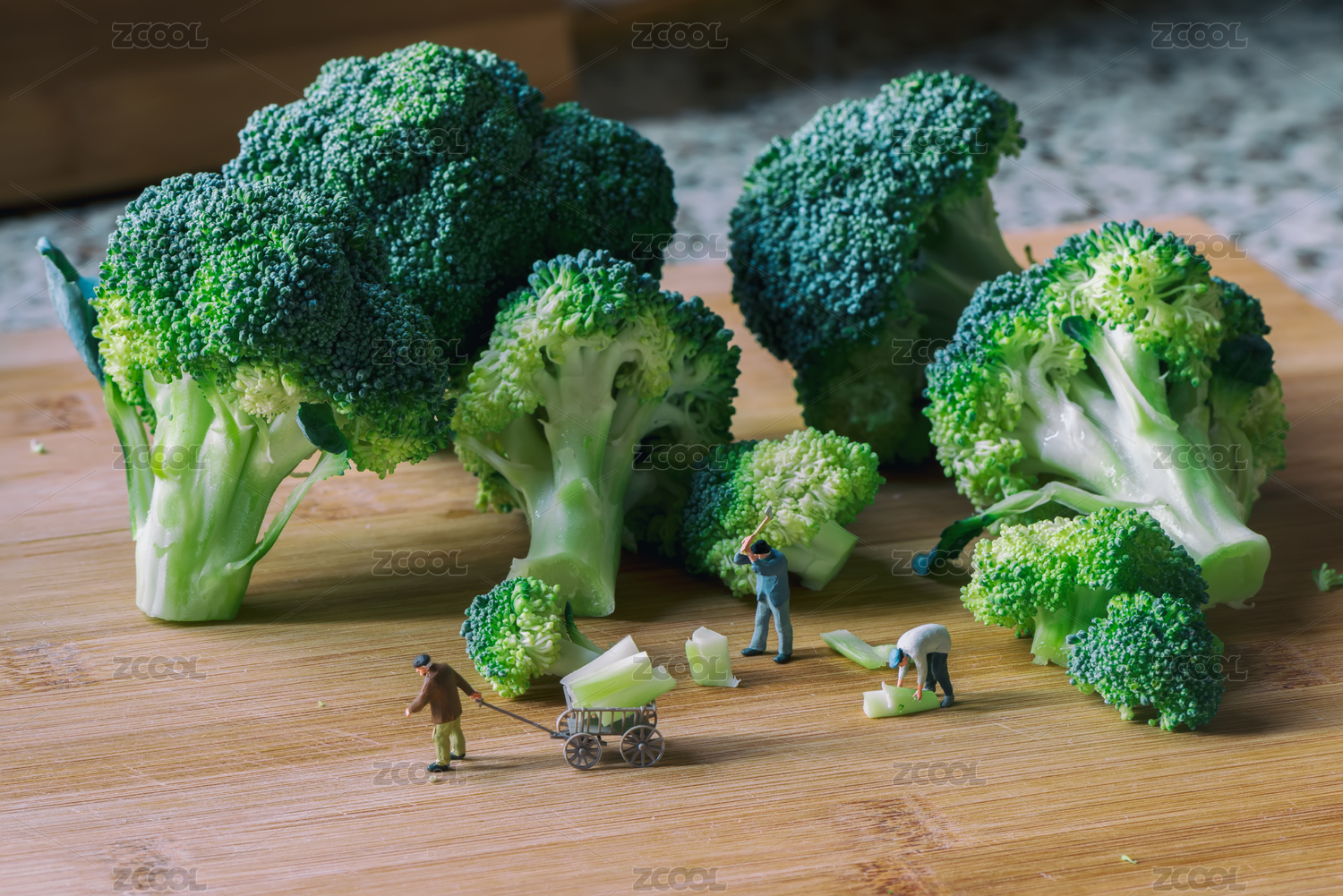 菜板上的西兰花土豆和白菜