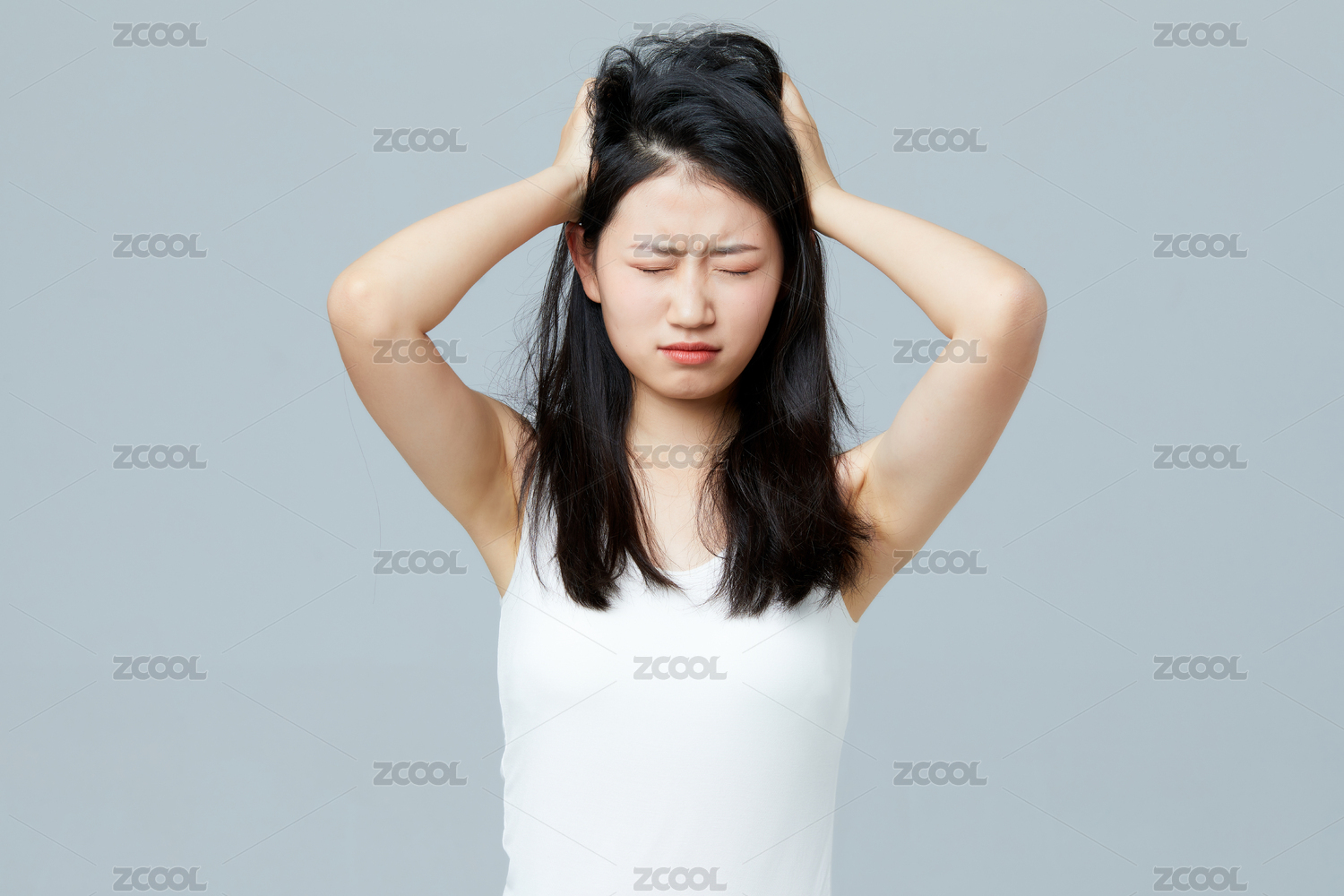女孩的散开的秀发上面开着嫩黄色的鲜花