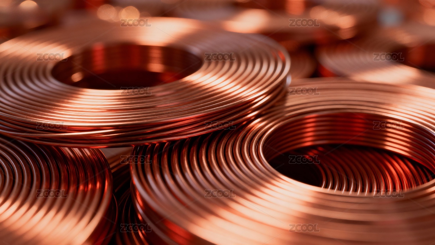 铜线圈特写 光影交织 金色螺旋