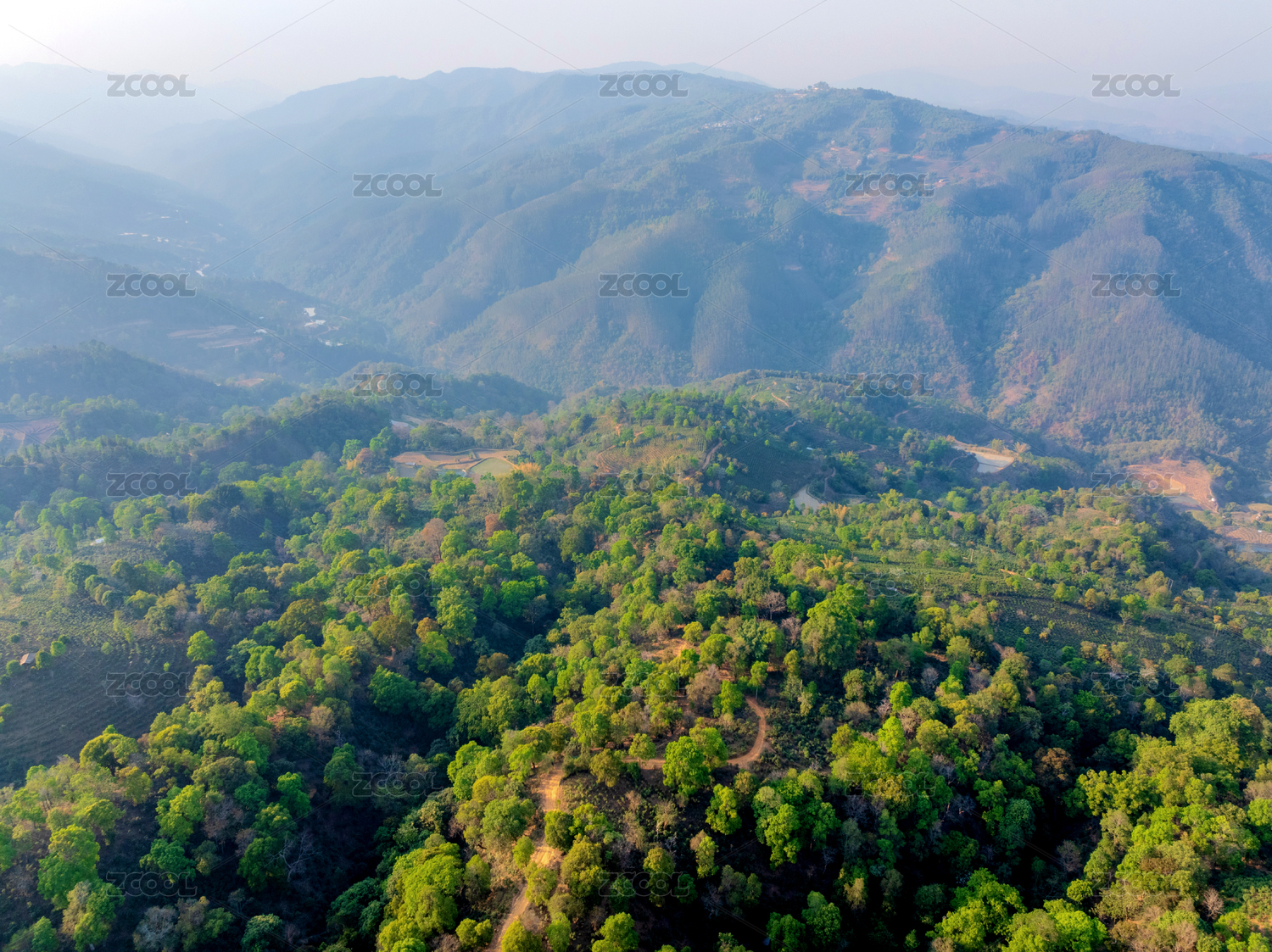 中国云南普洱澜沧景迈山古茶园航拍风光