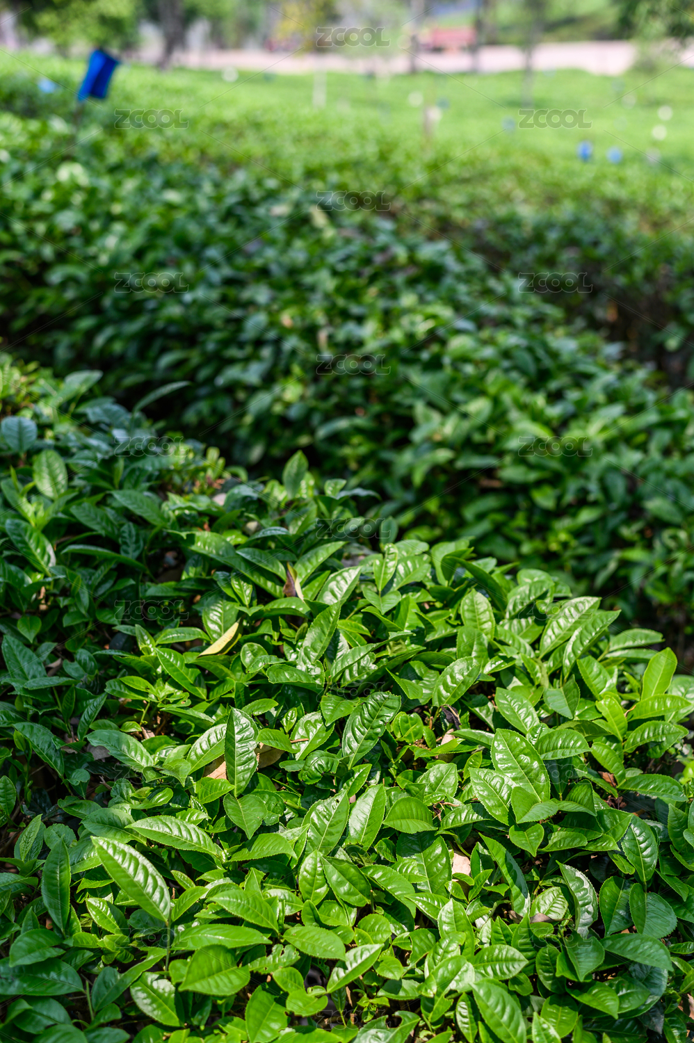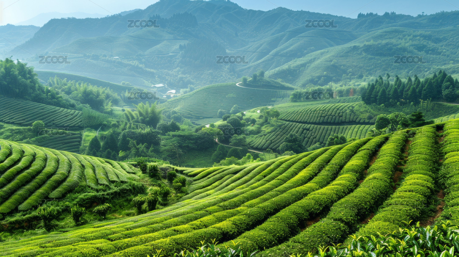 绿色的茶叶园山坡阳光照射