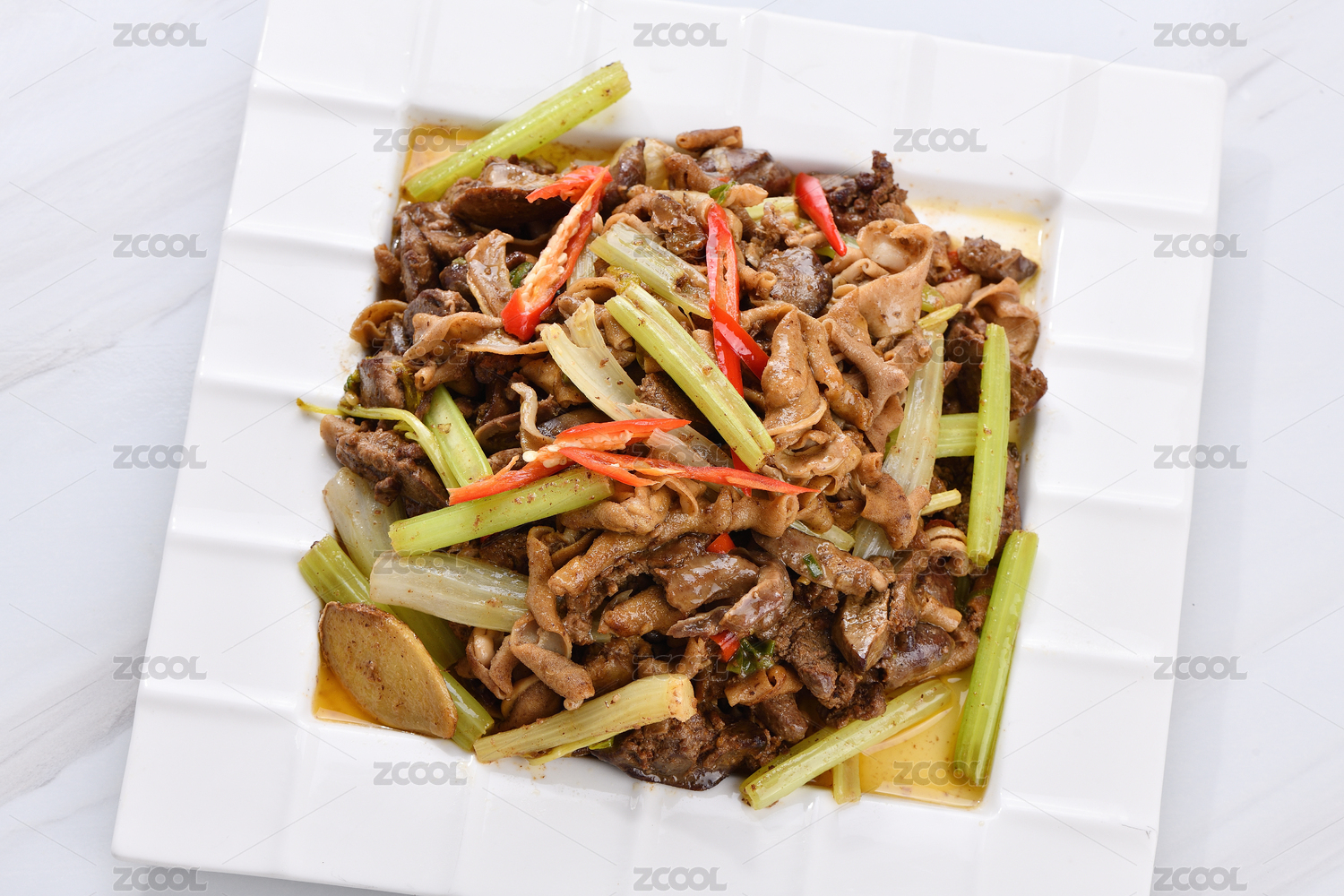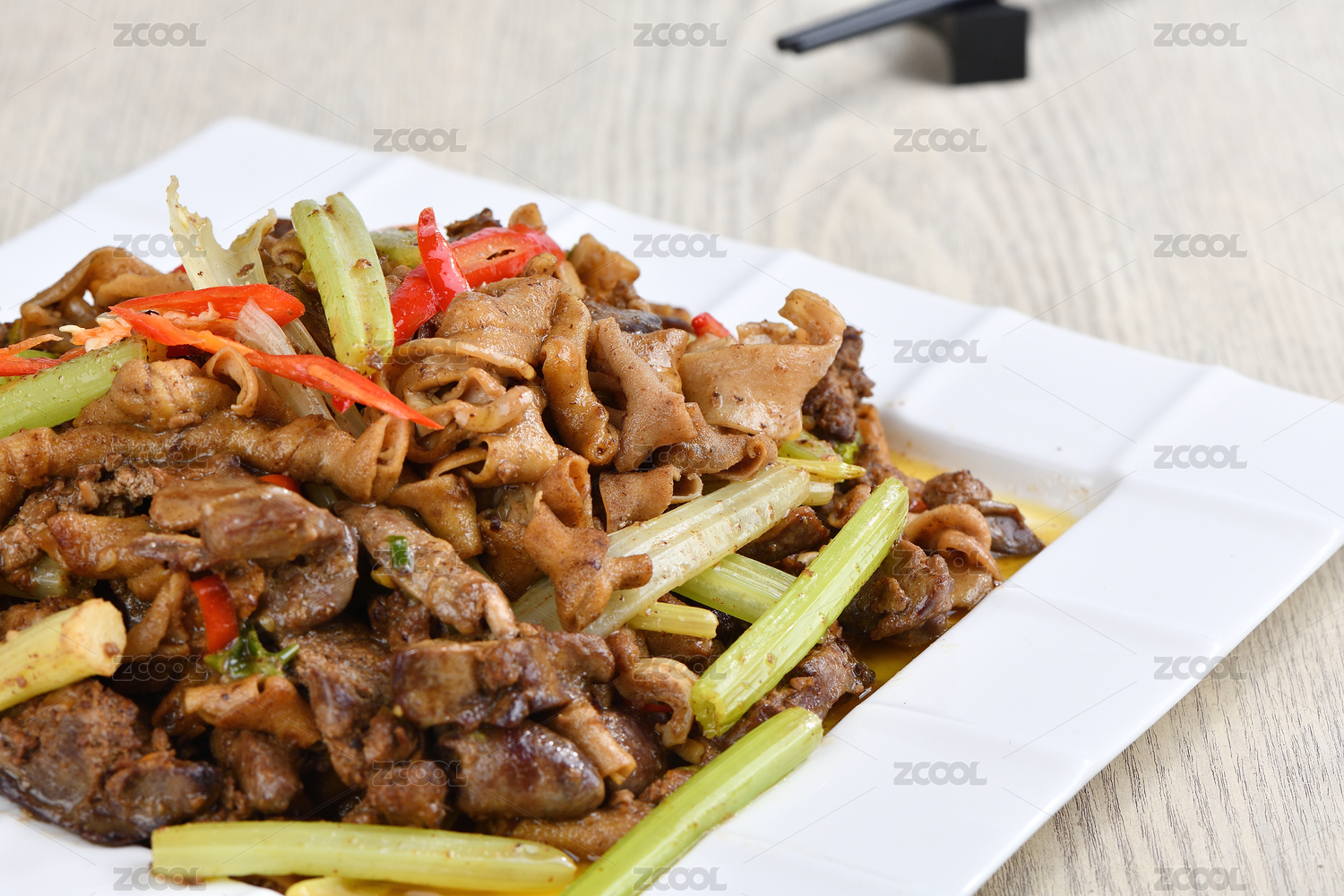 一碟鸡杂炒芹菜