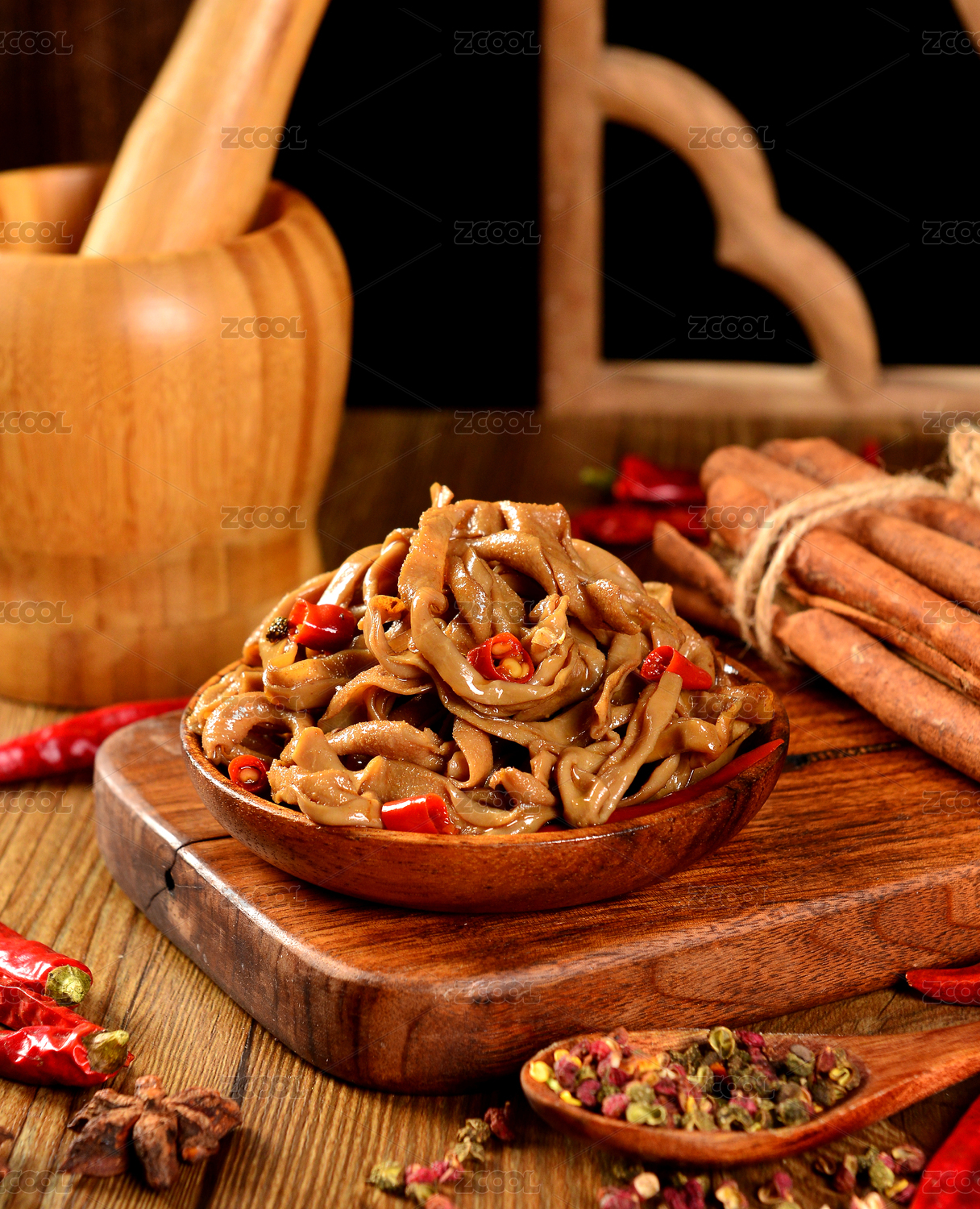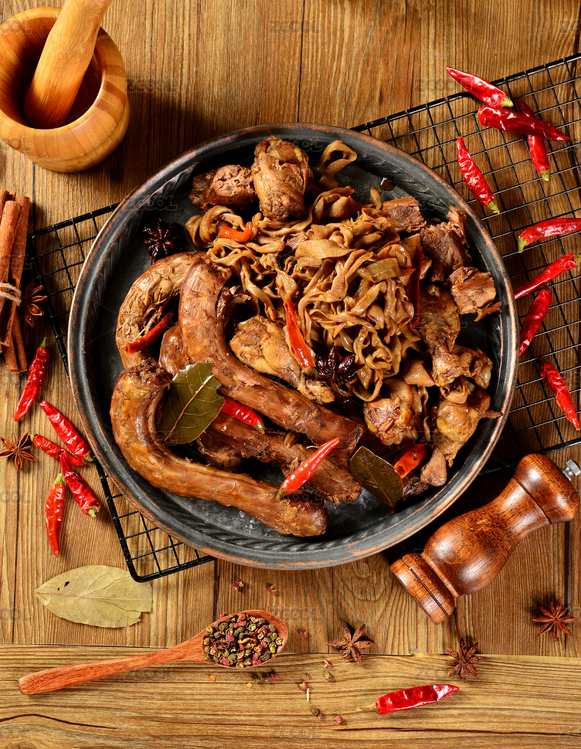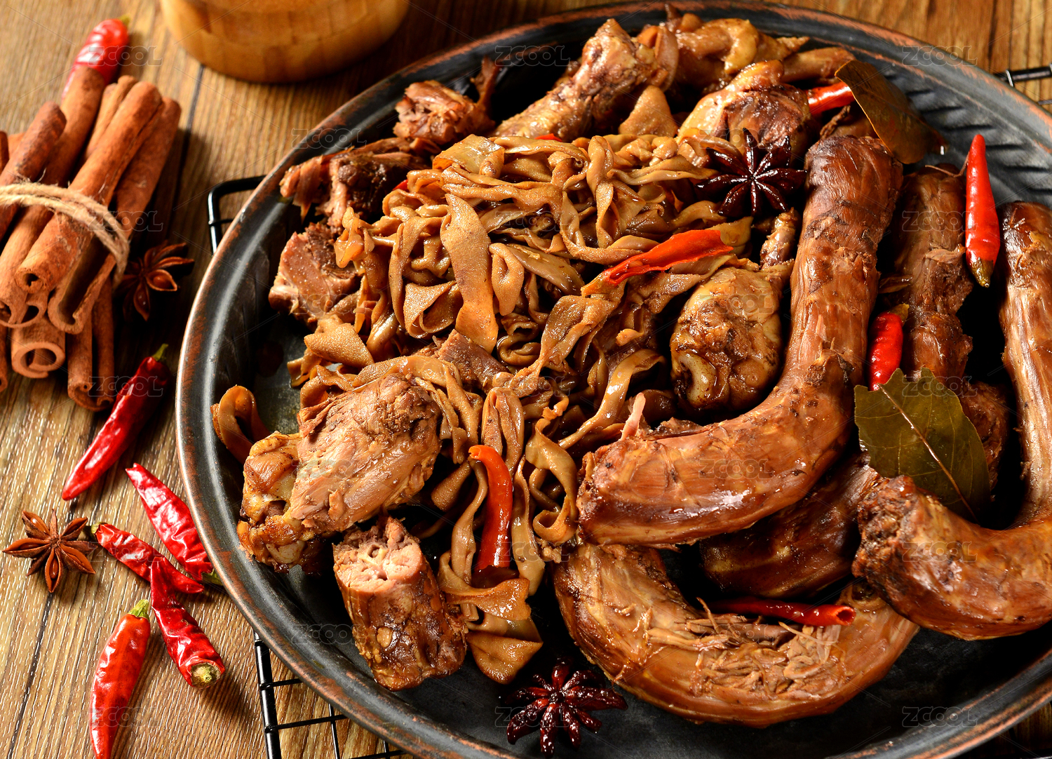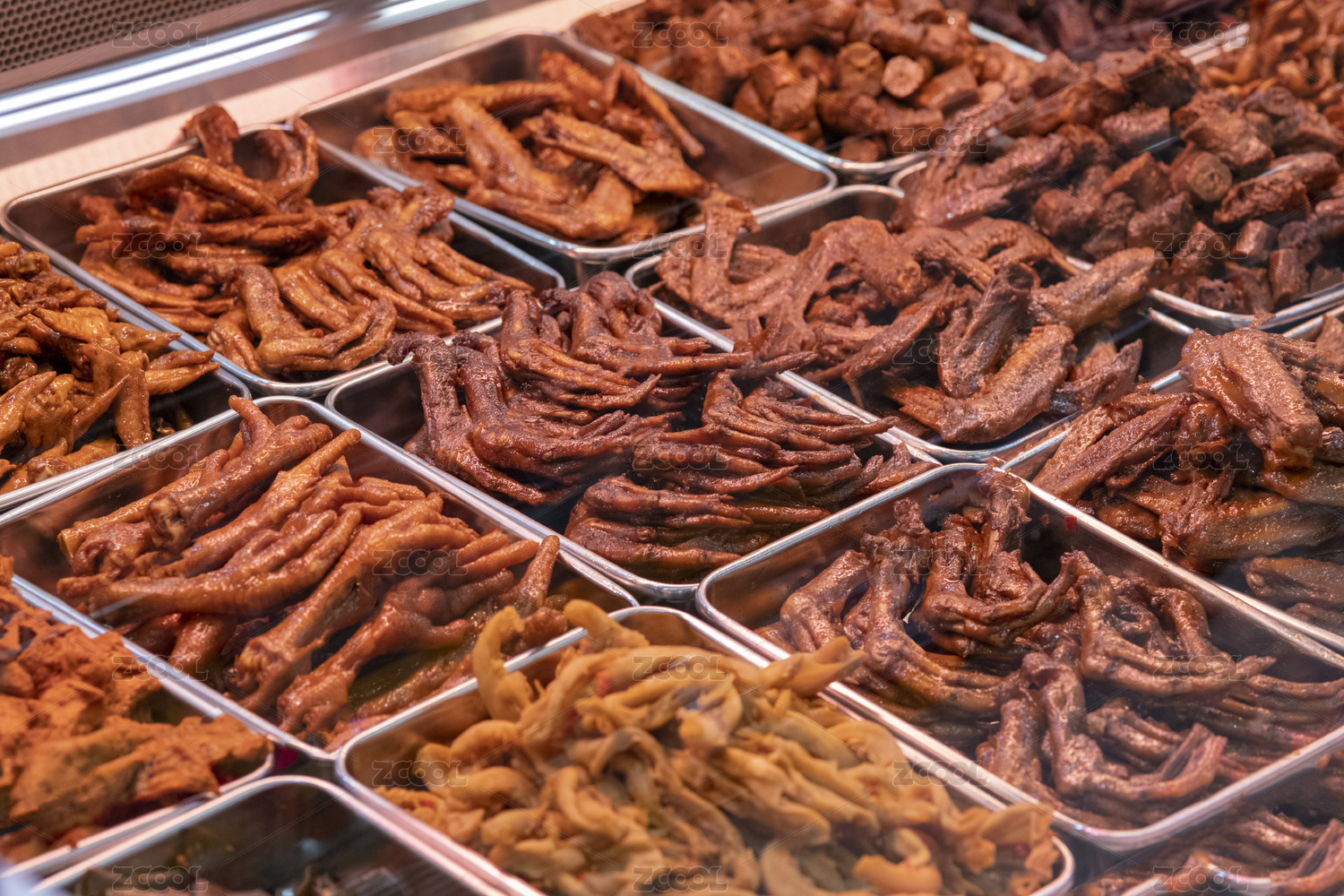 颜色诱人的酱鸭翅酱鸭爪酱鸭脖酱鸭肠特写