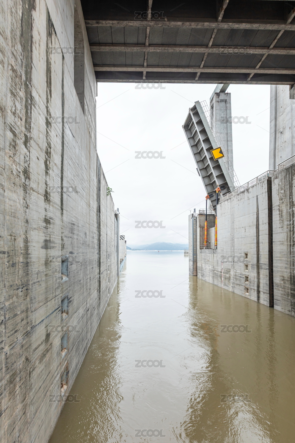 中国湖北宜昌三峡大坝壮观的大型船闸设施
