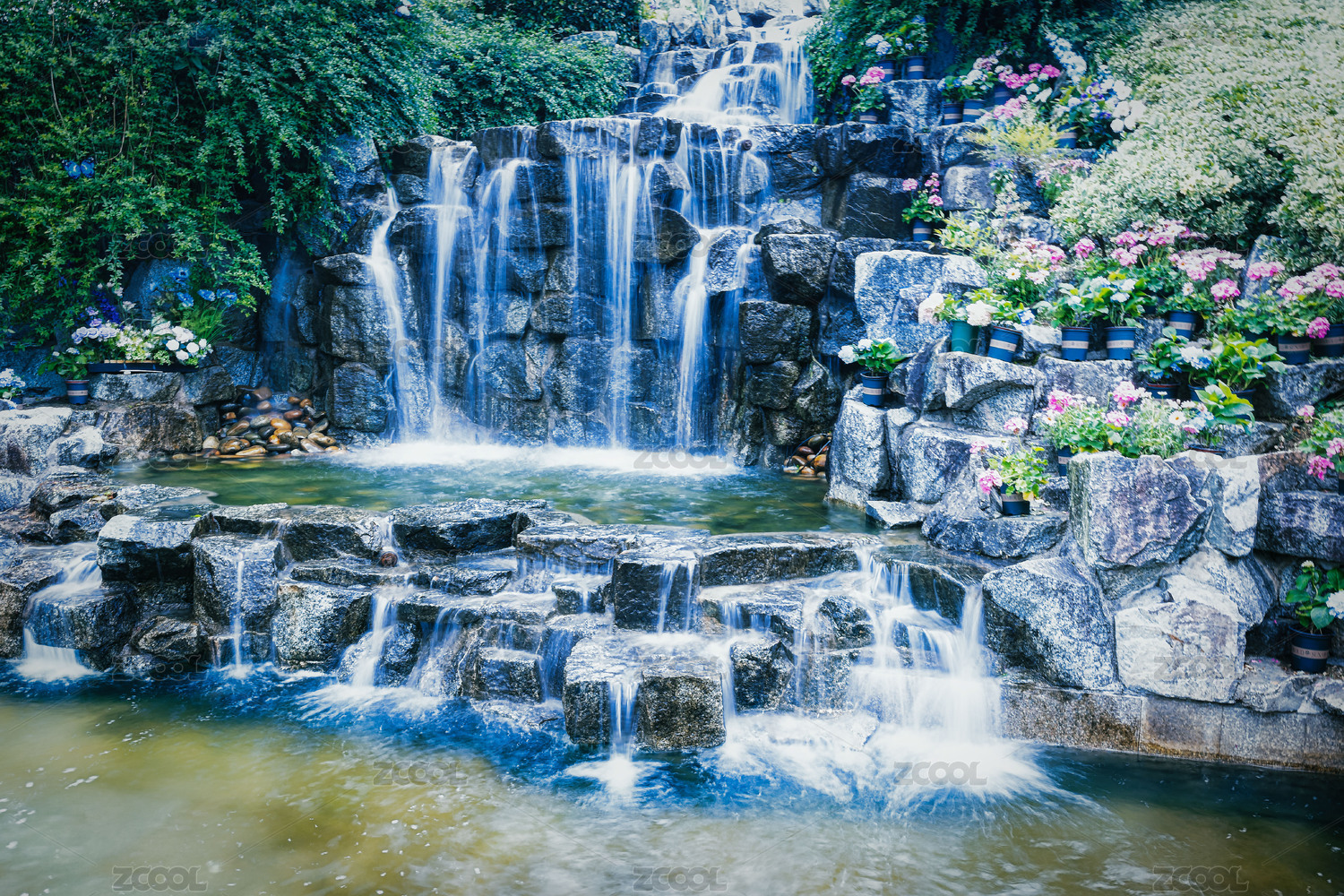 春季白天三峡大坝景区叠瀑景观特写