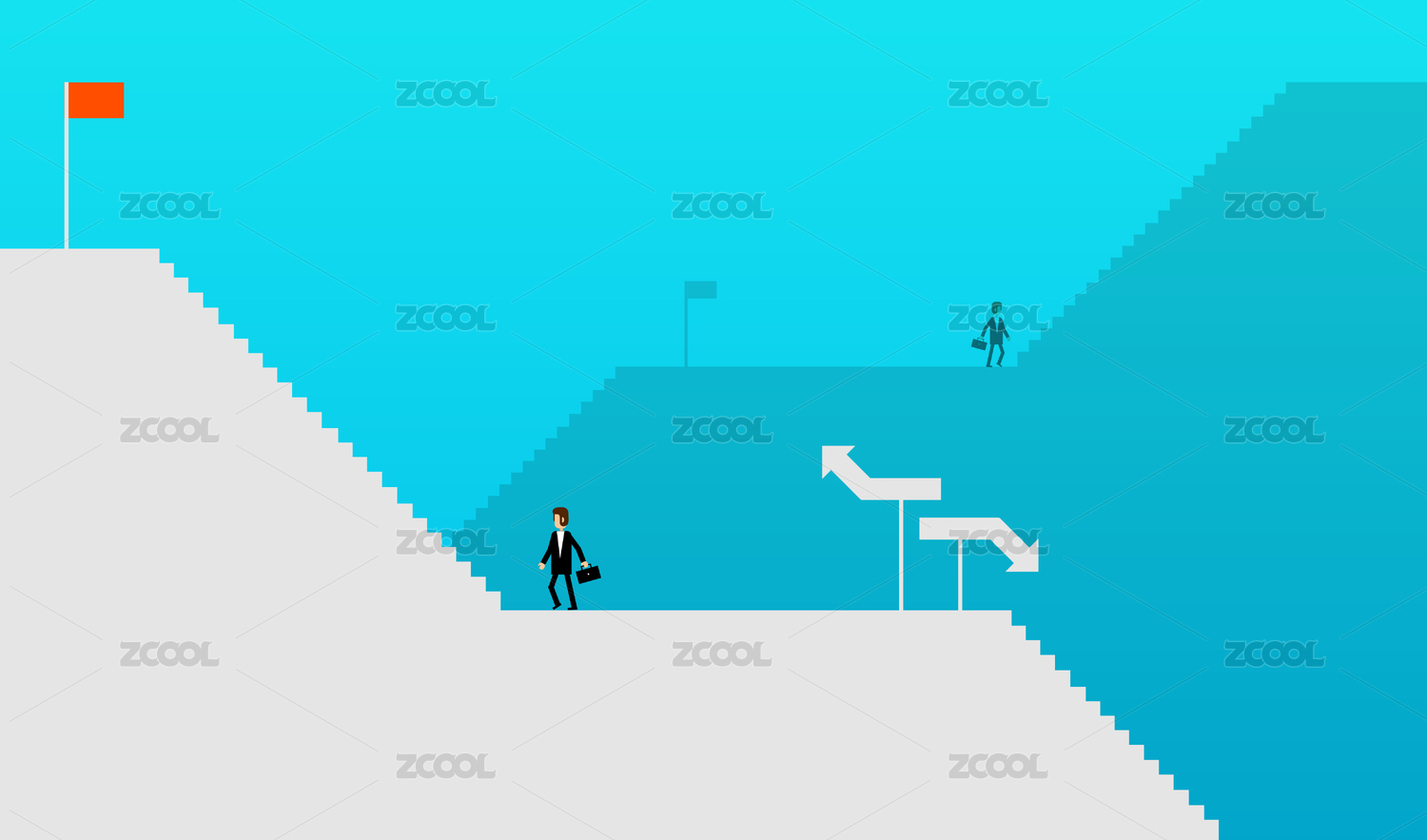 商务男精英业绩向上阶梯矢量扁平插画
