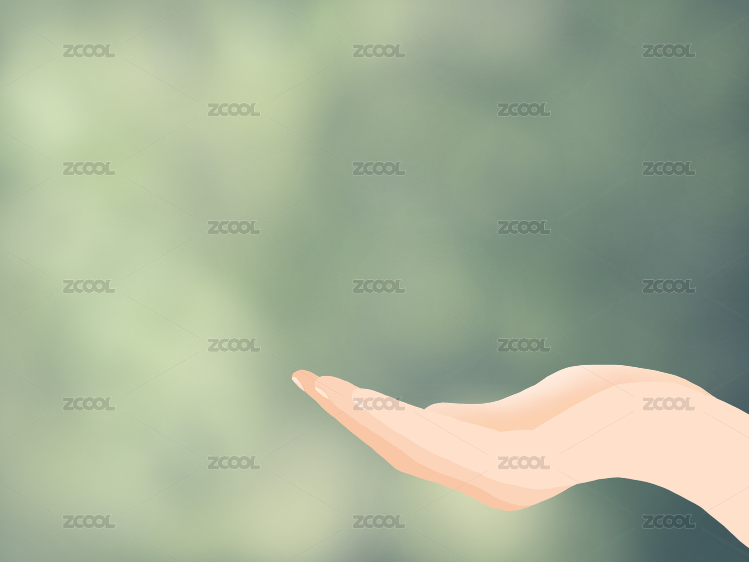 森系黄绿色光斑背景女性单手伸出向上捧托