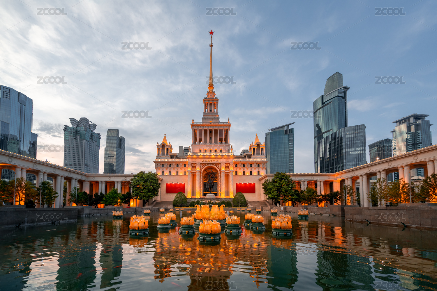 俄罗斯莫斯科全俄展览中心正大门及雕塑