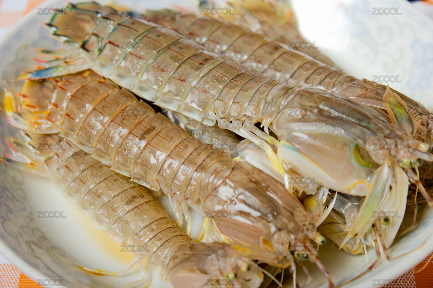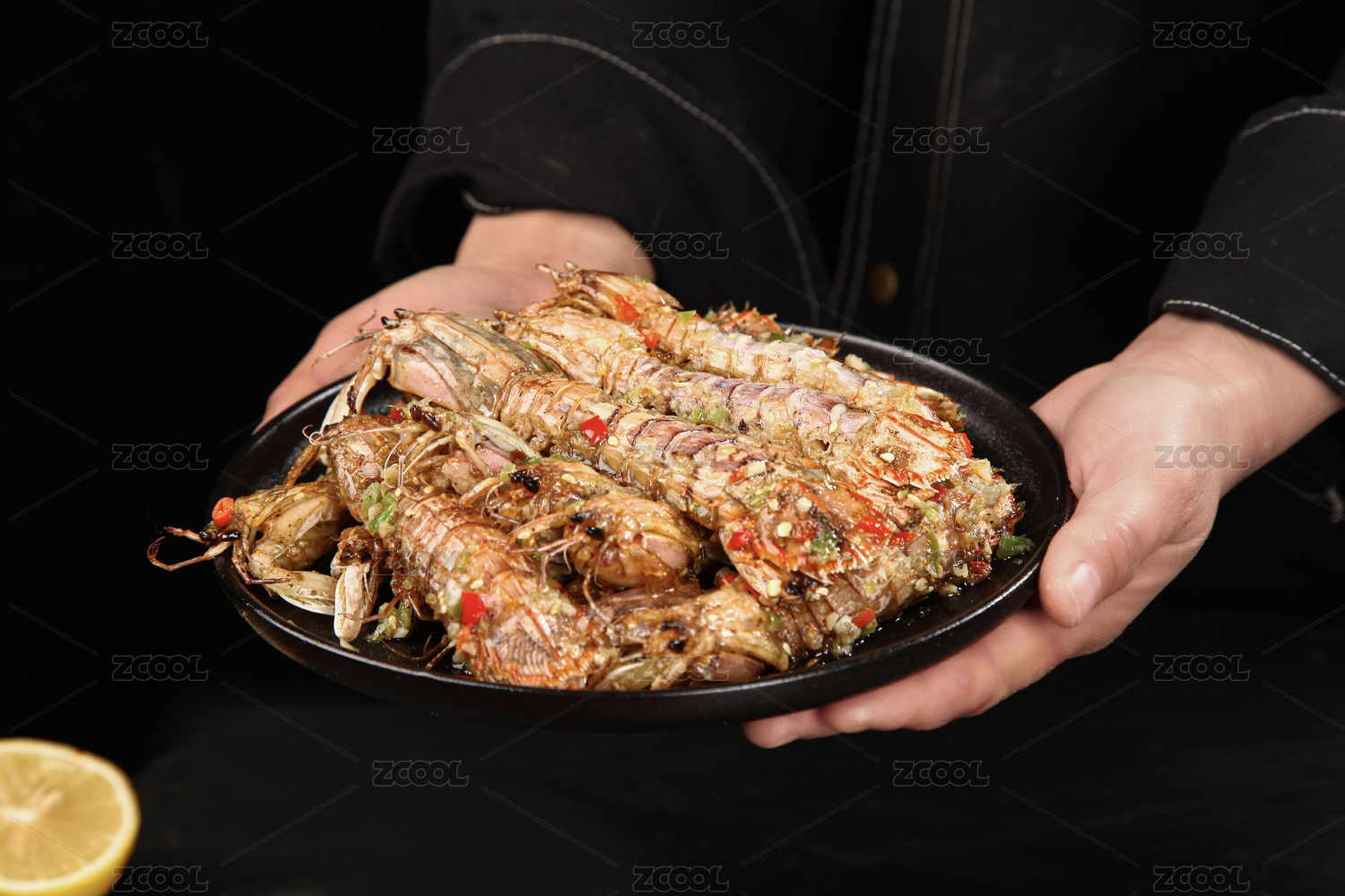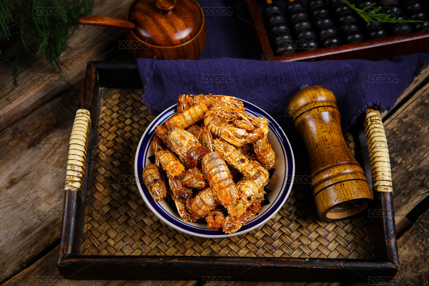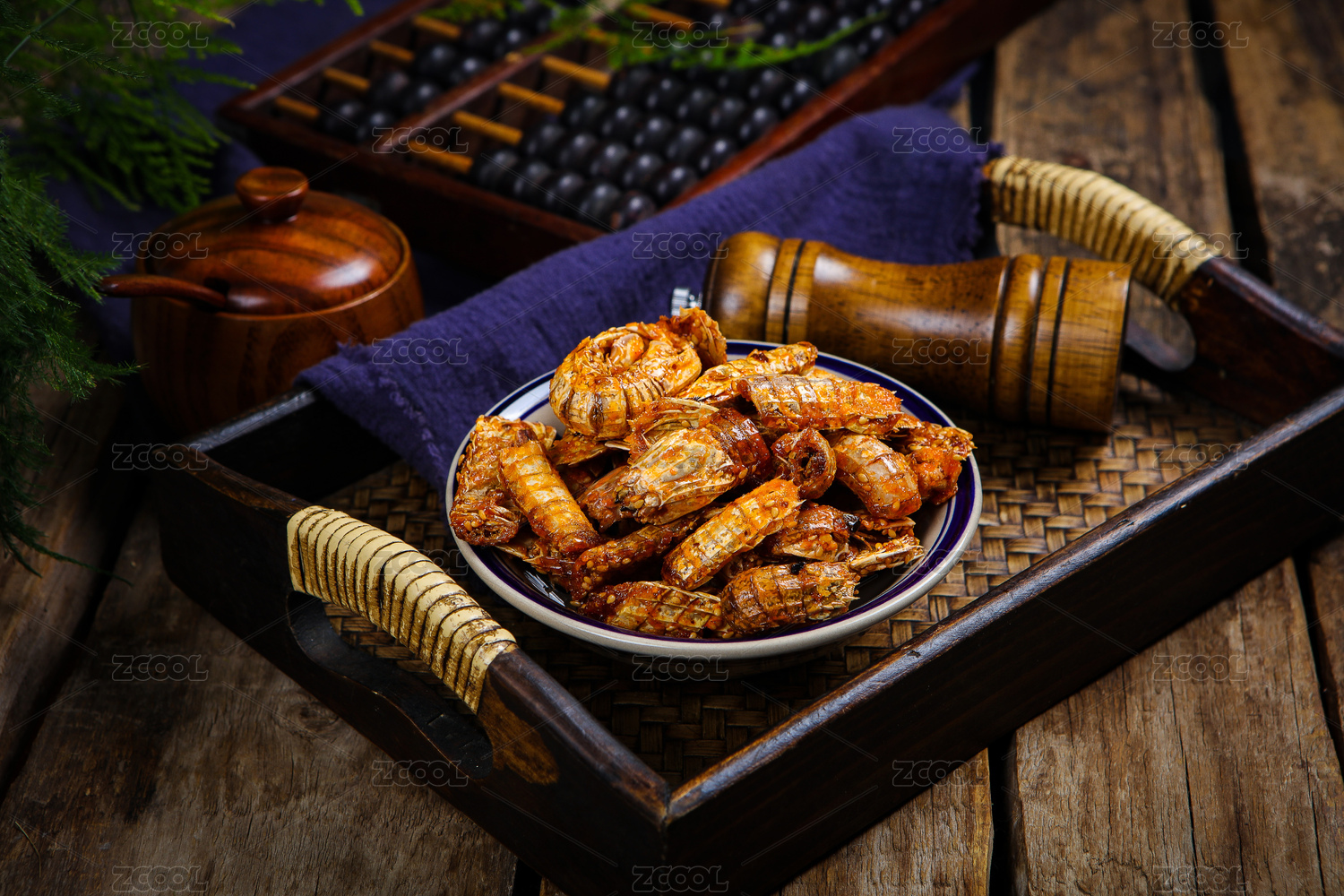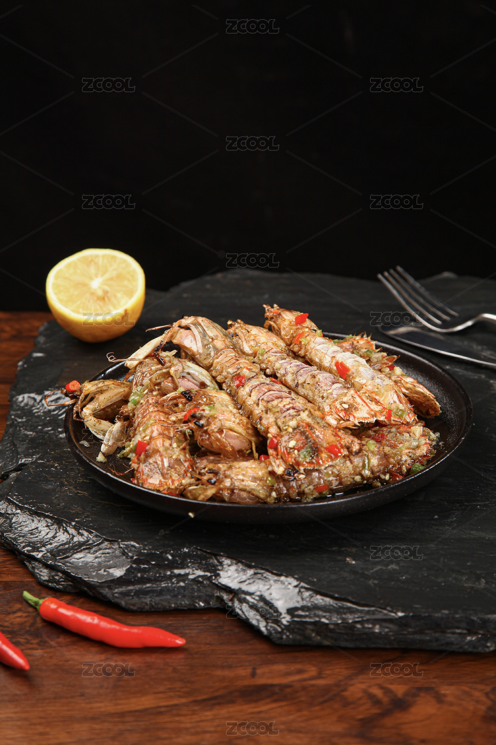 海南三亚特色海鲜椒盐皮皮虾静物特写