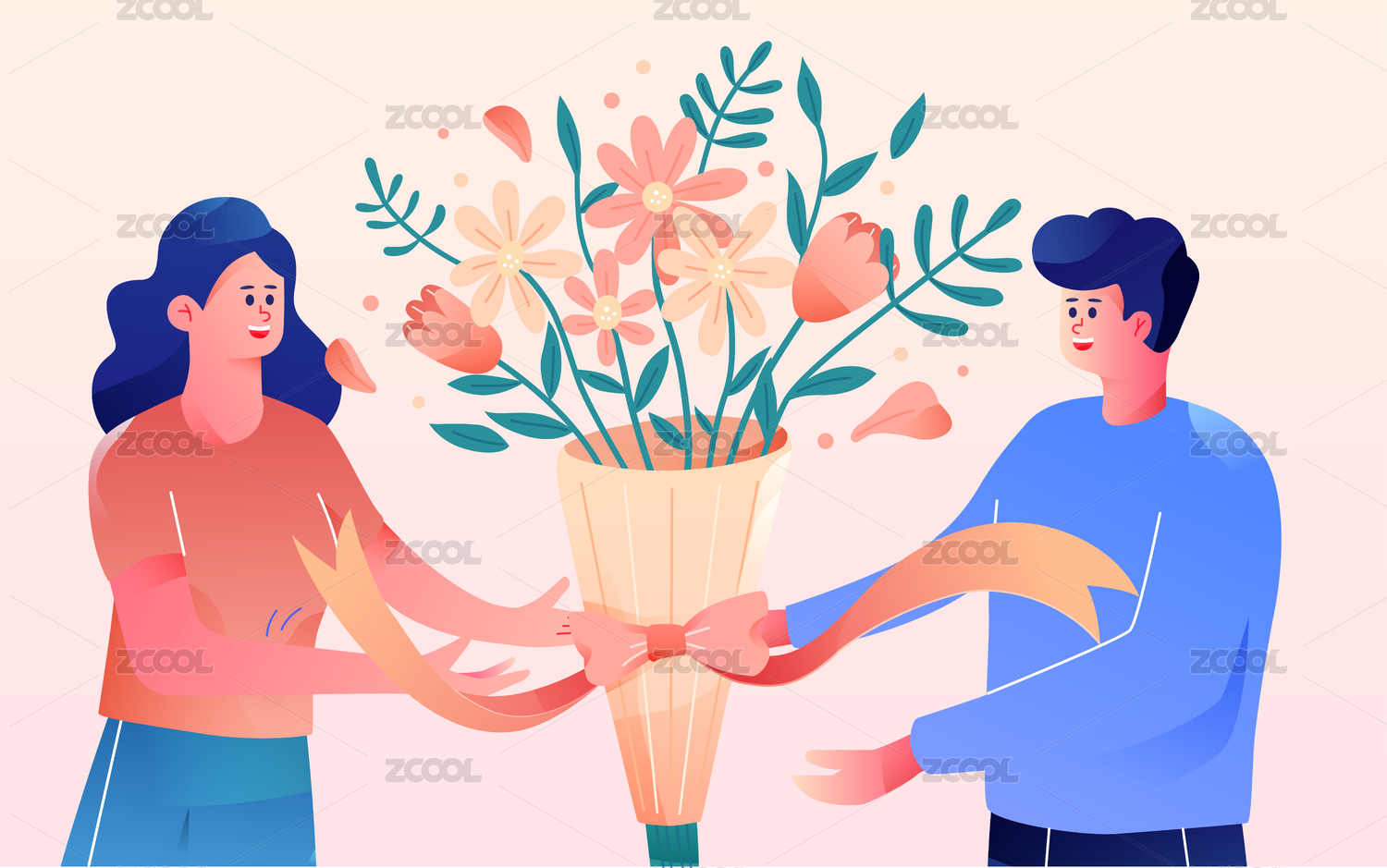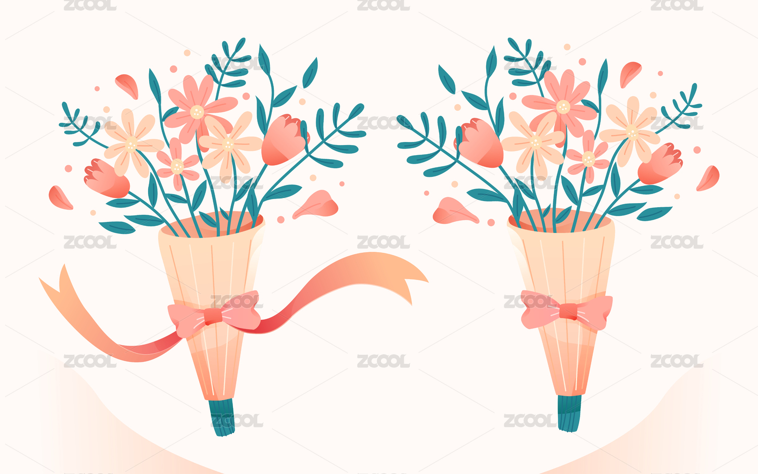 卡通母亲节情人节鲜花贺卡矢量插画素材模版