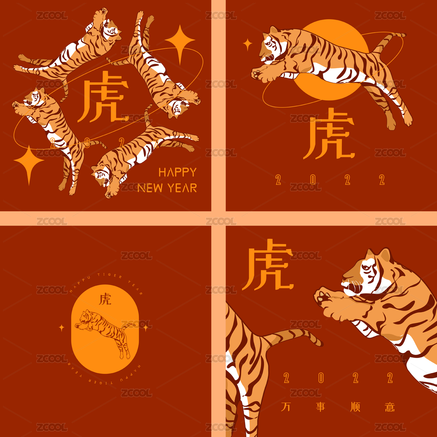 虎年老虎新年设计感矢量贺卡模板