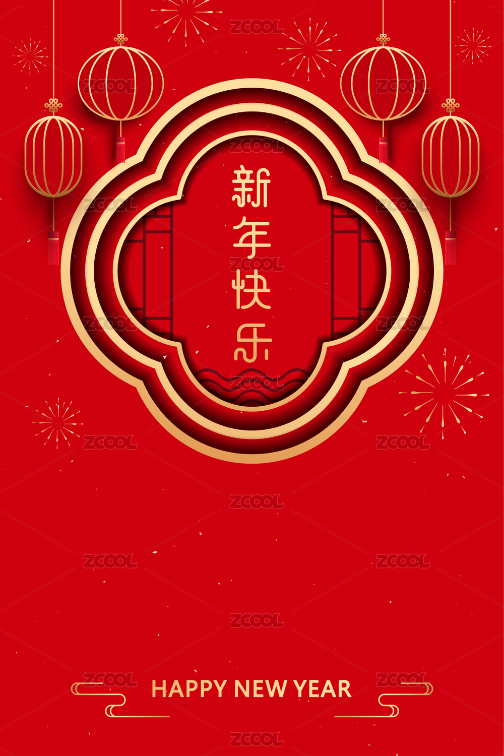 新年贺卡模板,中国新年传统元素背景