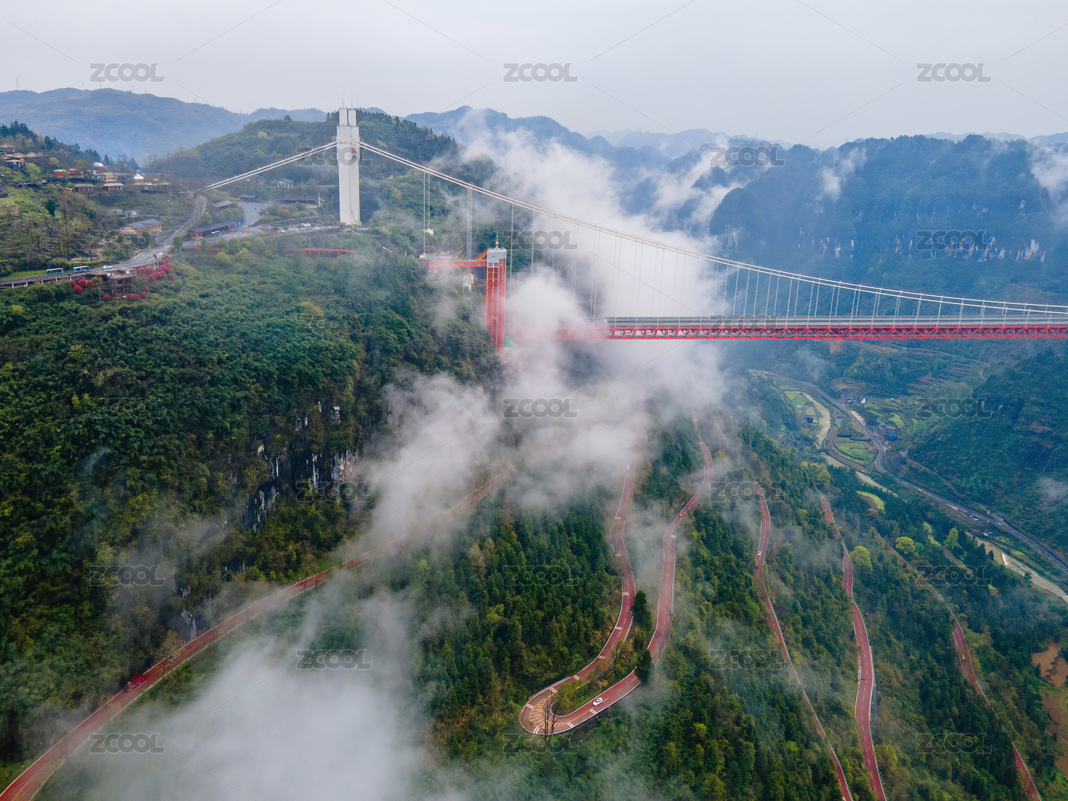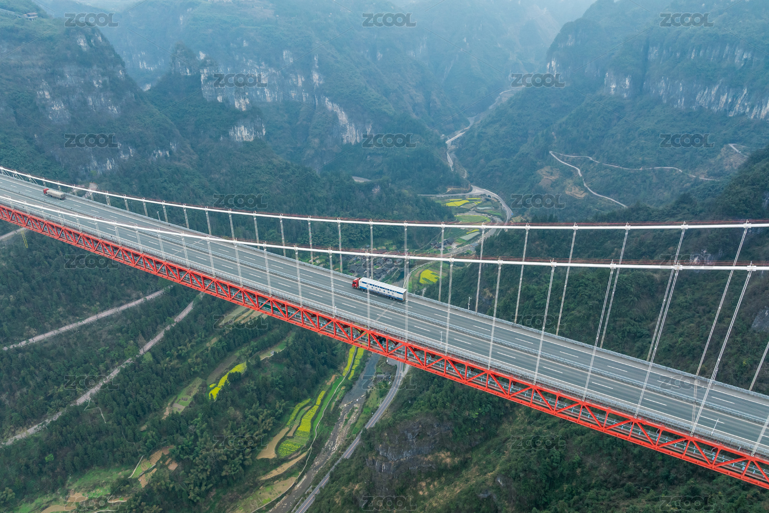 峡谷间的湖南湘西矮寨特大悬索桥